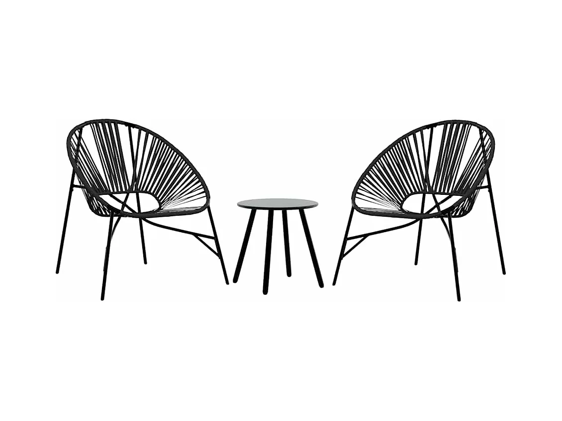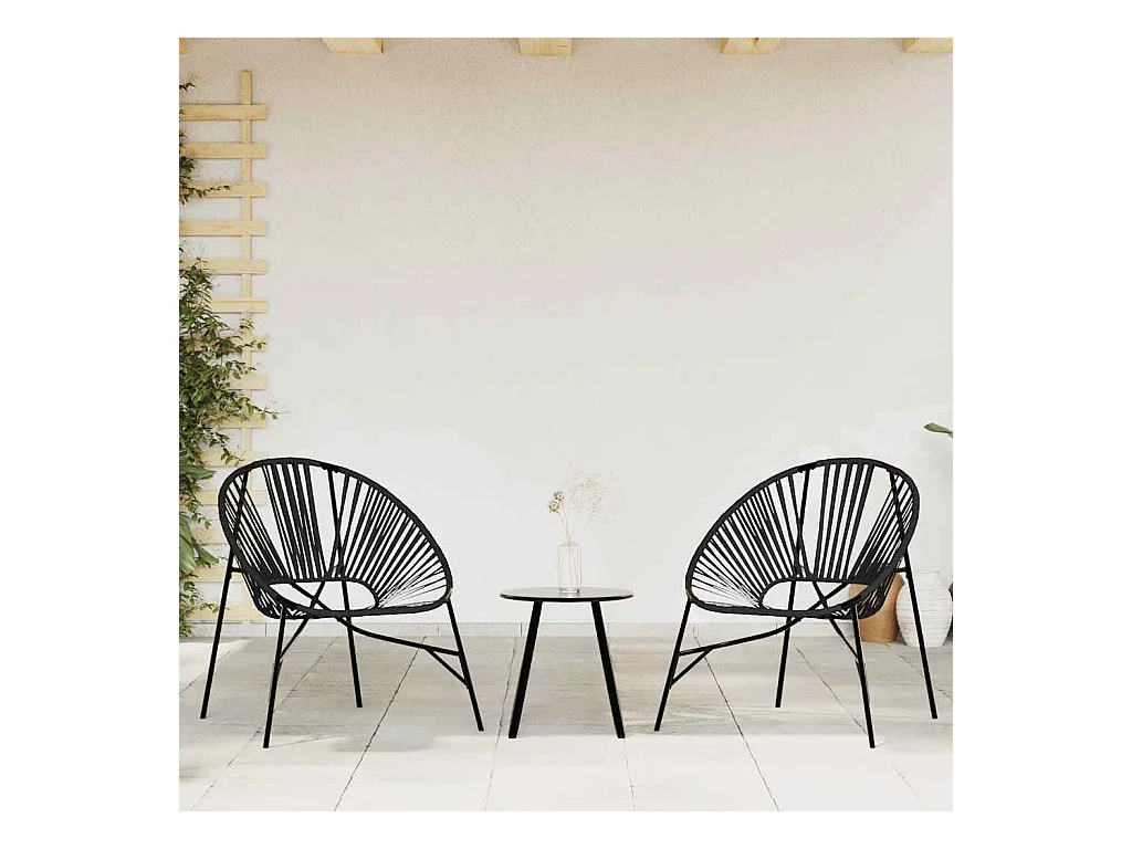 Lot de 3 Chaises longues de jardin table à thé Résine tressée Noir FR93449