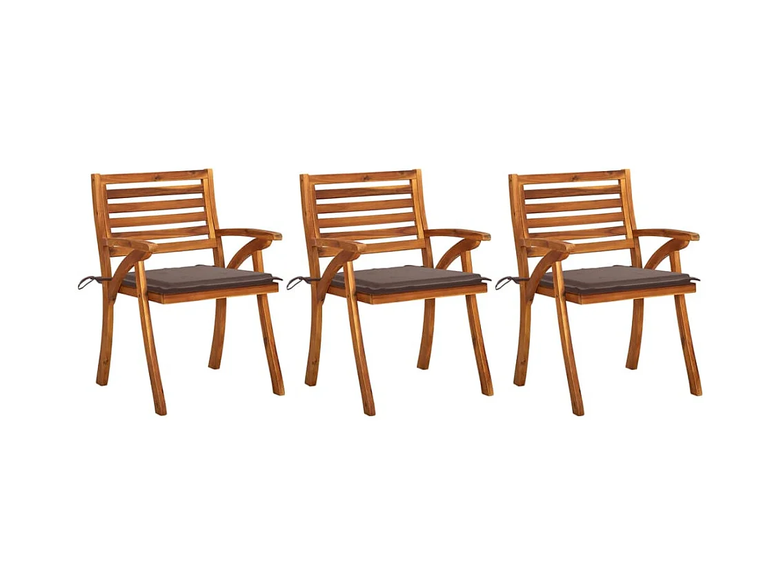 Lot de 3 Chaises à dîner de jardin avec coussins Acacia massif FR57291