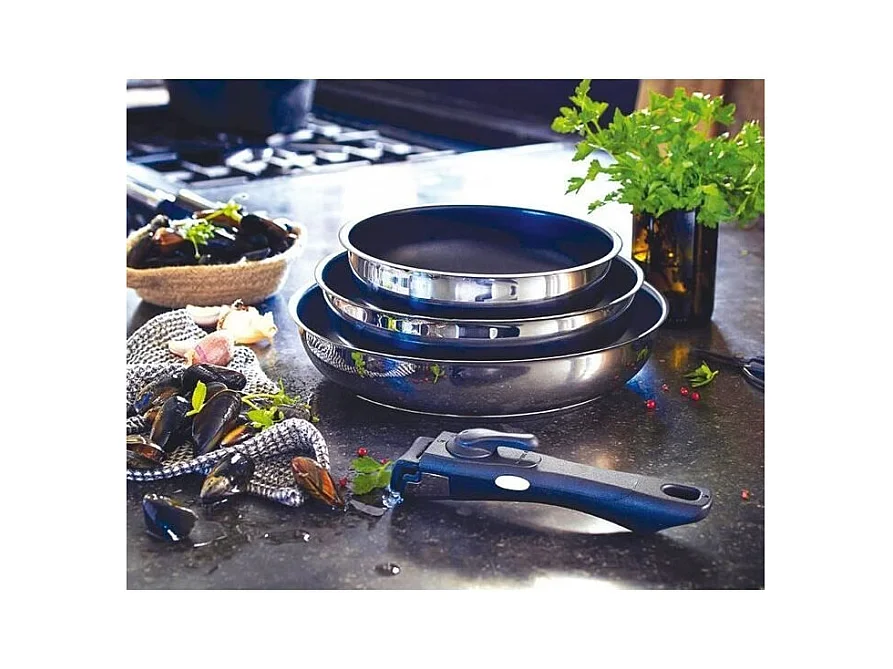 Lot de 3 poeles - BAUMALU - Comete - 20 / 24 / 28 cm - Manche amovible - Acier inoxydable