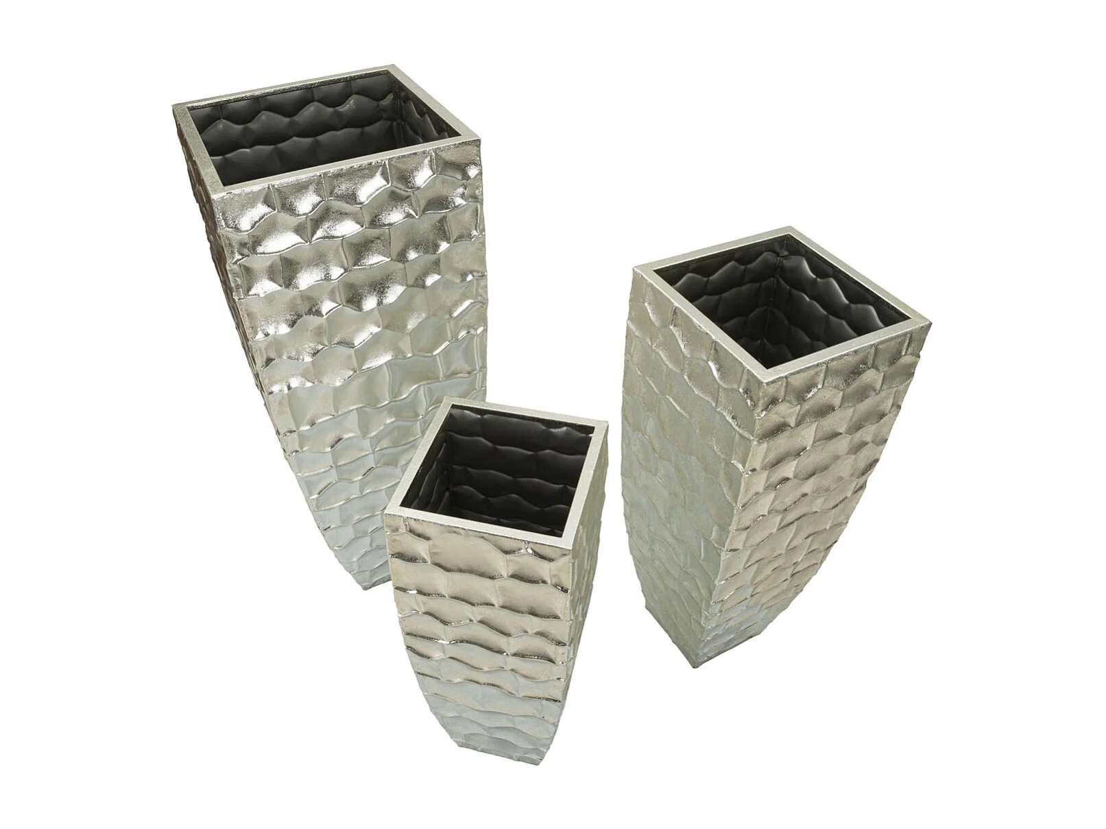 Lot de 3 Pots Décoratifs MF422, Argent, 38,1x38,1x90,8 cm, Seven Design