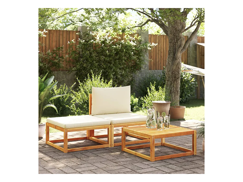 Lot de 3 Salon de jardin avec coussins bois massif d'acacia FR597079 FR958307