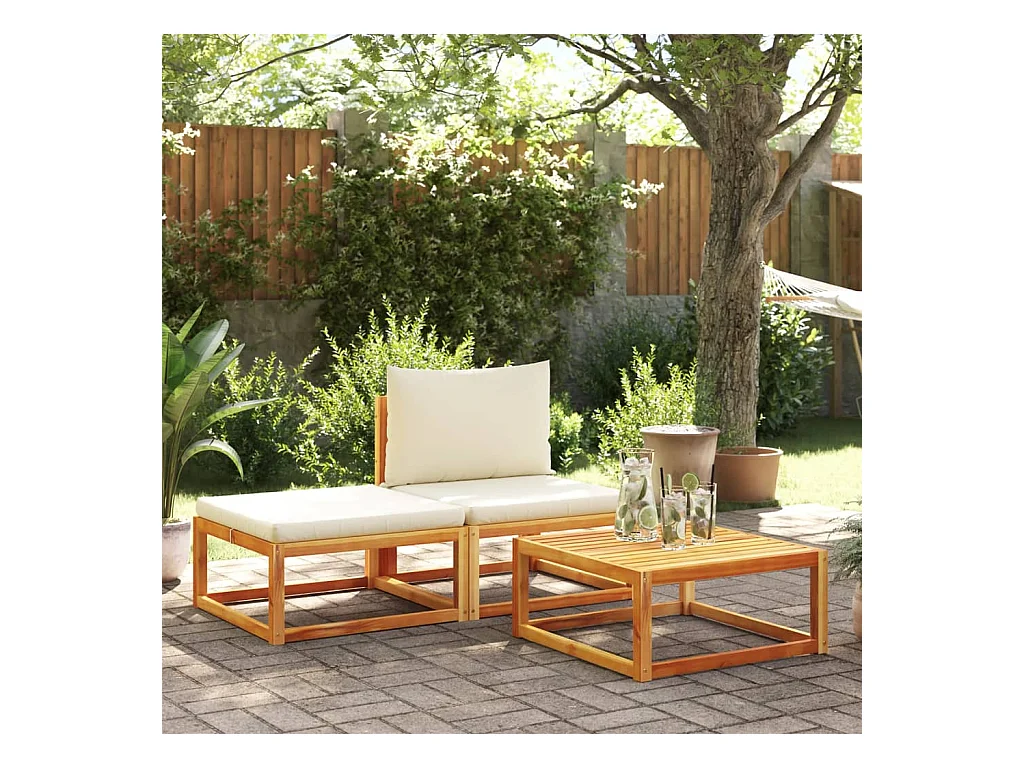 Lot de 3 Salon de jardin avec coussins bois massif d'acacia FR446817 FR994206