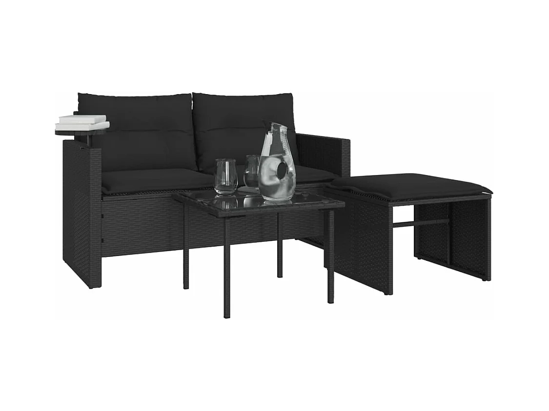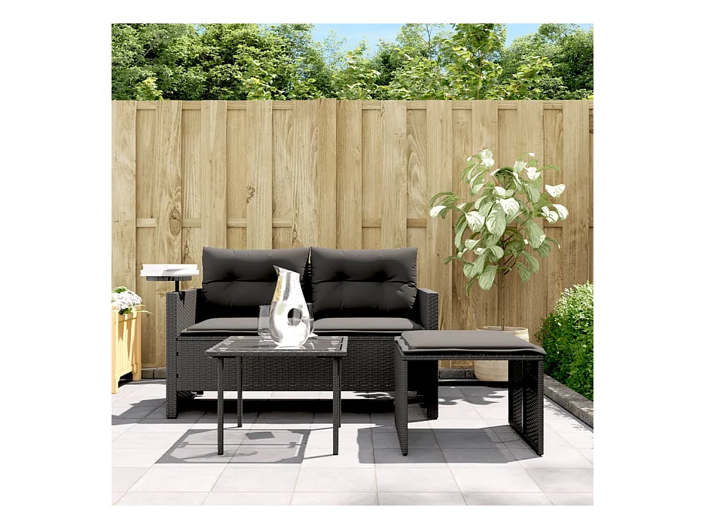 Lot de 3 Salon de jardin avec coussins noir résine tressée FR532404 FR878892