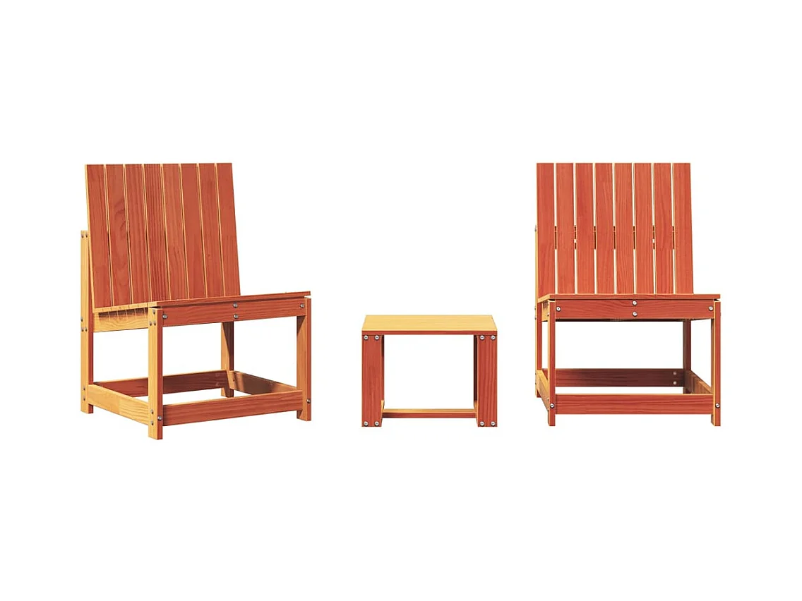 Lot de 3 Salon de jardin cire marron bois de pin massif FR309327 FR405847