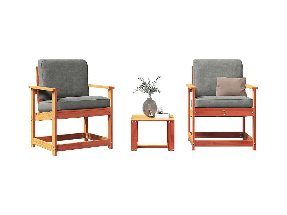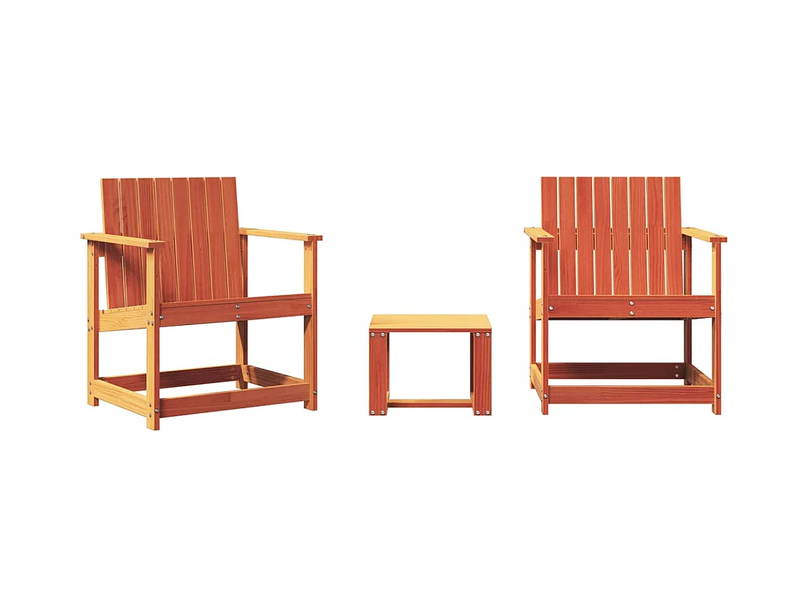 Lot de 3 Salon de jardin cire marron bois de pin massif FR309327 FR405847