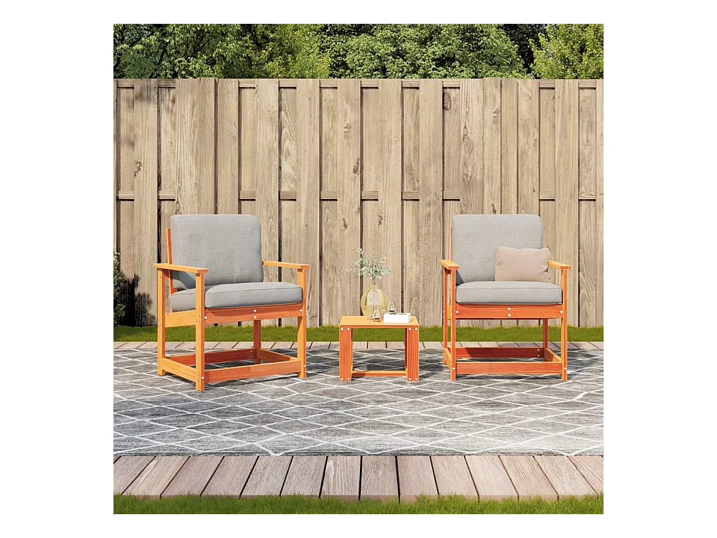 Lot de 3 Salon de jardin cire marron bois de pin massif FR702887 FR646533