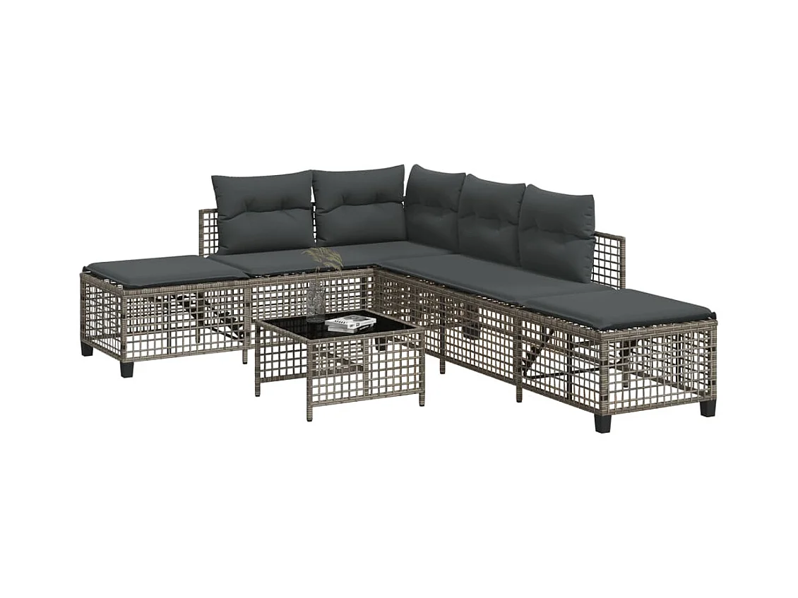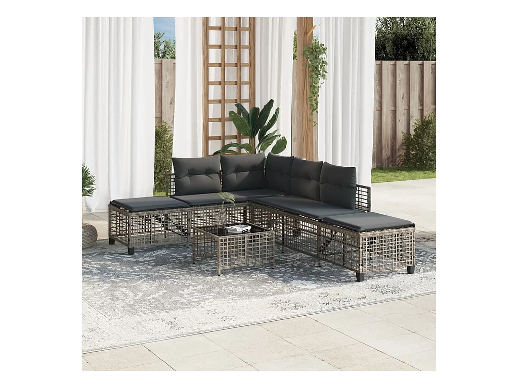 Salon de jardin 7 pièces avec coussins Résine tressée Gris