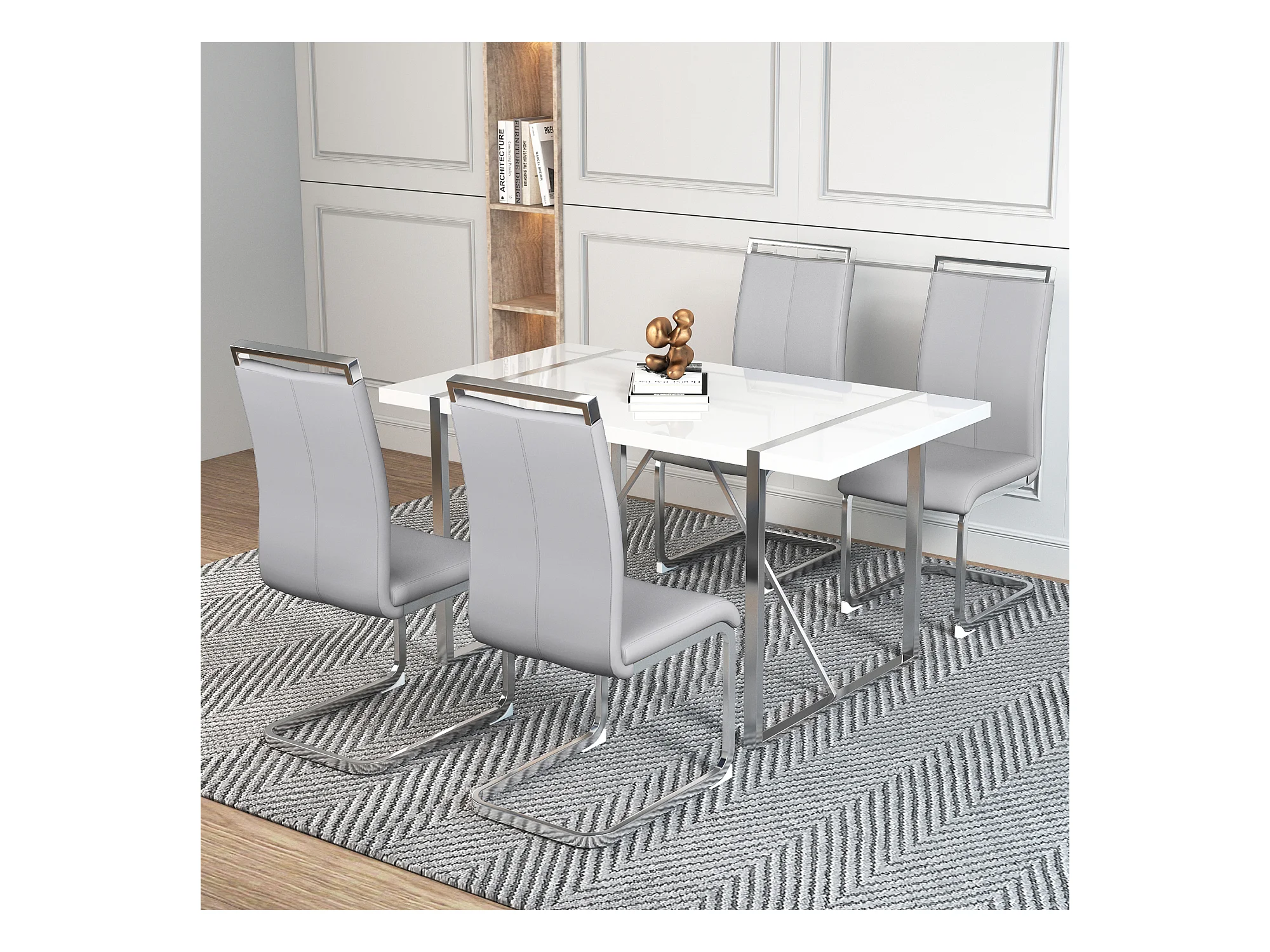 Lot de 4 Chaise cantilever en simili cuir - Pièds en métal - Sans accoudoirs - Gris clair