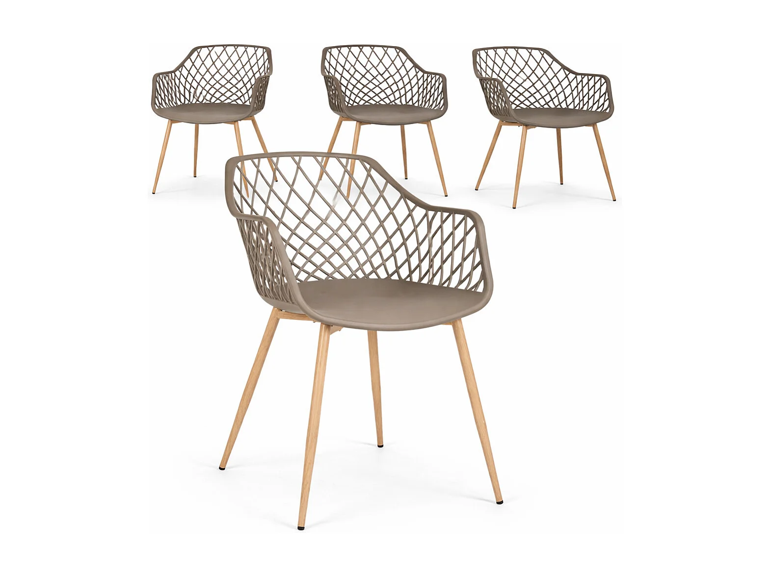 Lot de 4 chaise Optik - Polyvalente pour intérieur et éxtérieur-Taupe