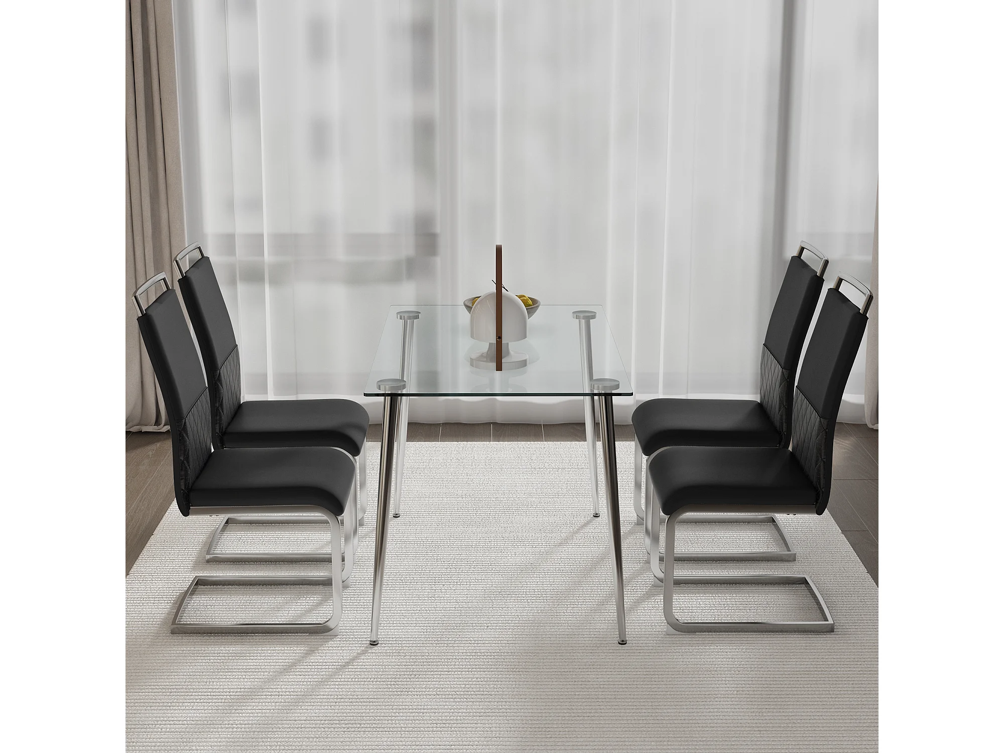 Lot de 4 chaises 42x45x95 cm avec Rembourrée Quatre repose-pieds en noir pour Salon et salle à manger et bureau