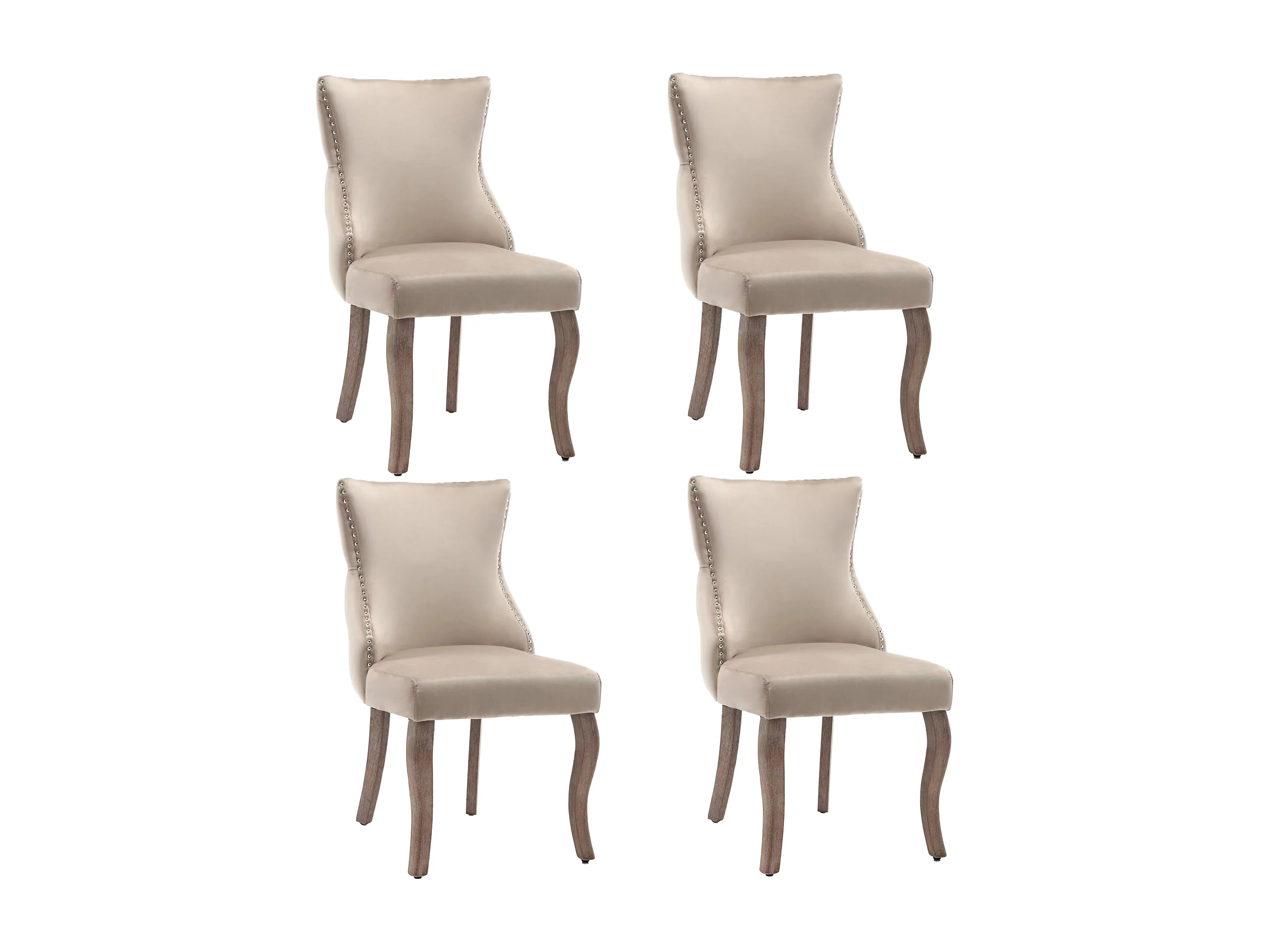 Lot de 4 chaises 50x45x91 cm avec Rembourrée Fermeture à boutons et ornée de rivets Matière velours en beige pour Salon et salle à manger
