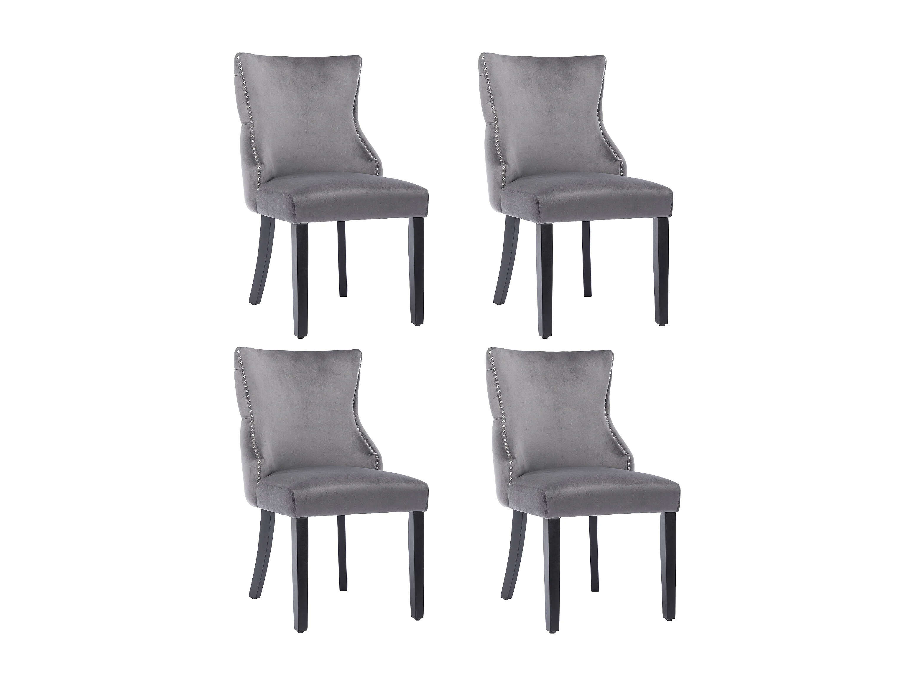 Lot de 4 chaises 50x52x91 cm avec Tissu capitonné et structure en bois massif Matériau Velours en gris pour Salon et salle à manger