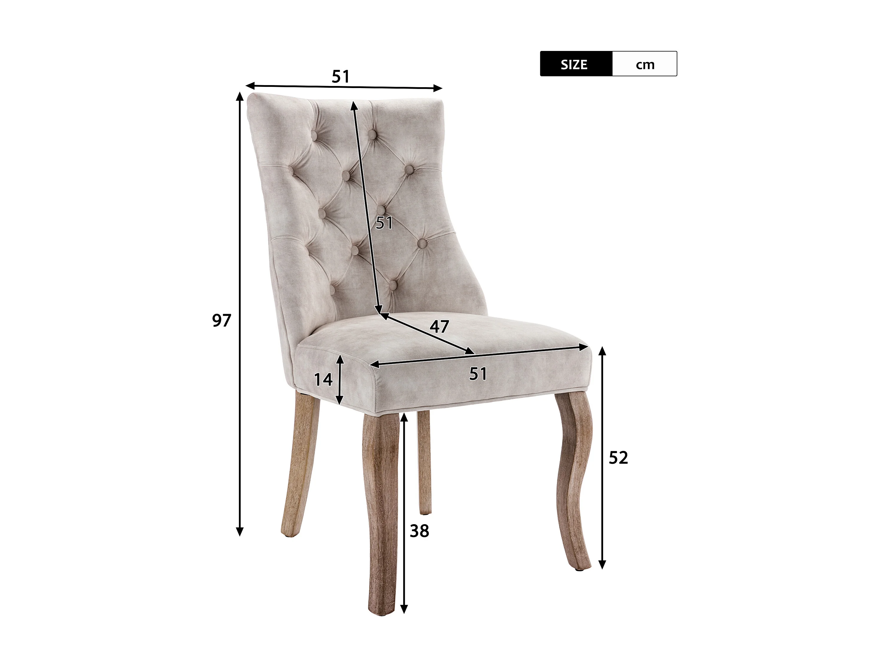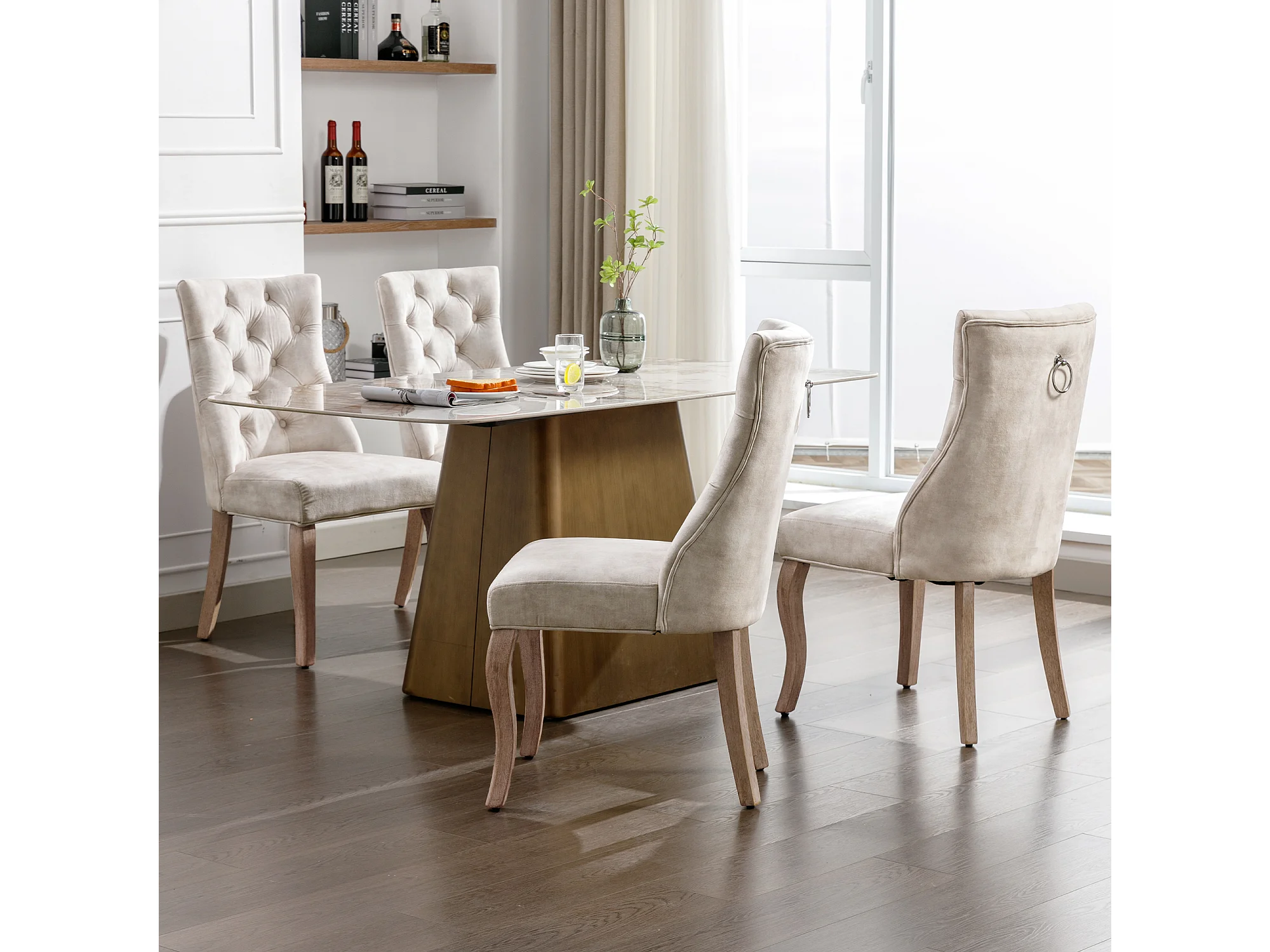 Lot de 4 chaises 51x47x97 cm avec Matière capitonnée Dossier haut en beige pour Salon et salle à manger et bureau