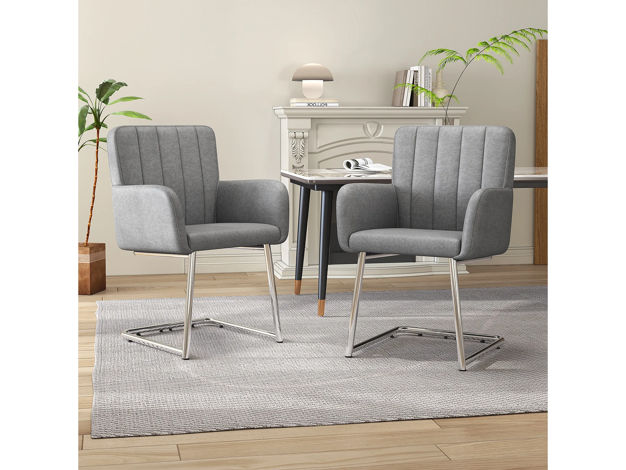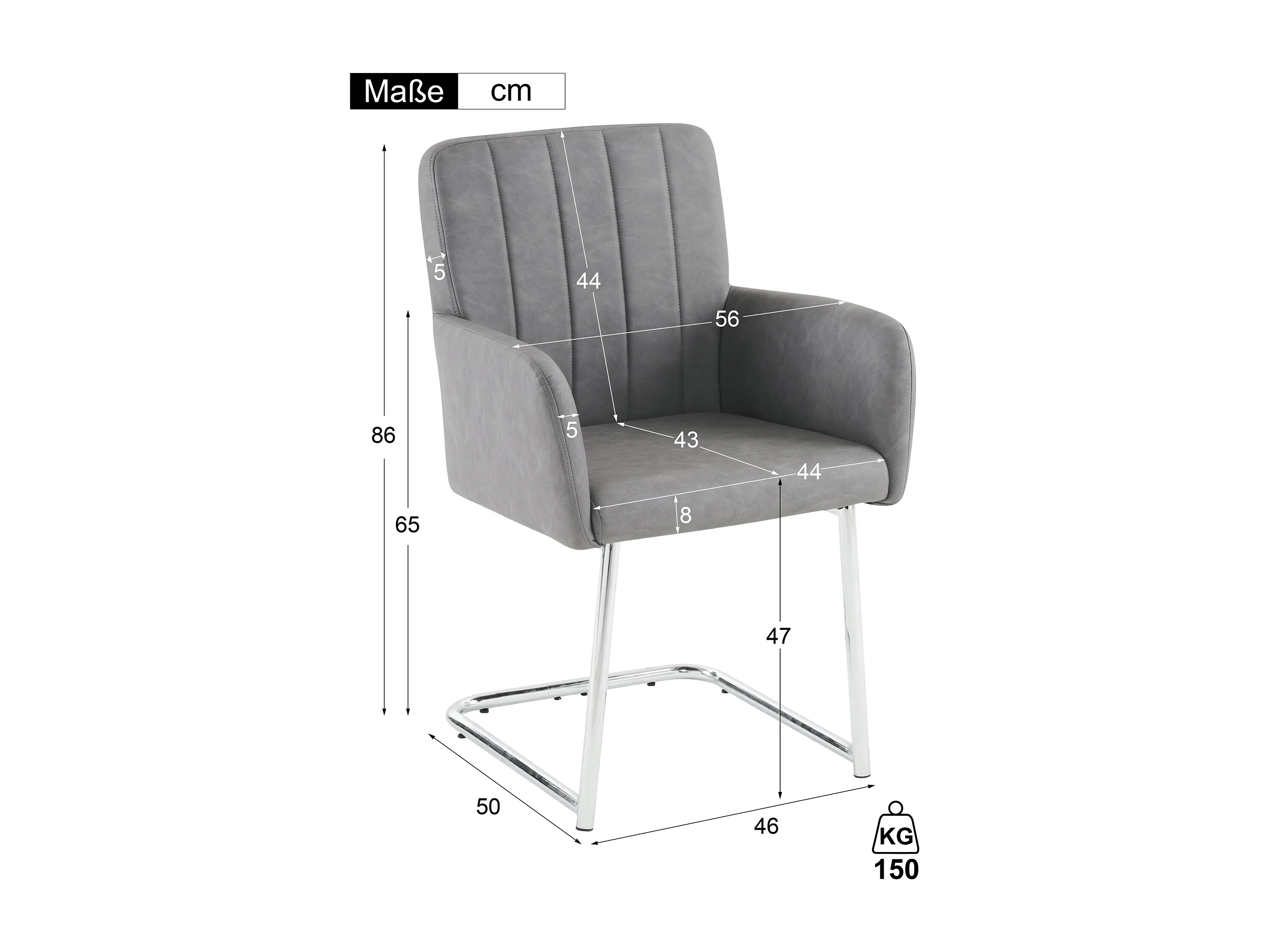 Lot de 4 chaises - 86 x 50 x 46 cm - fauteuil rembourré avec pieds en métal - pour chambre et bureau - cuir similaire -gris