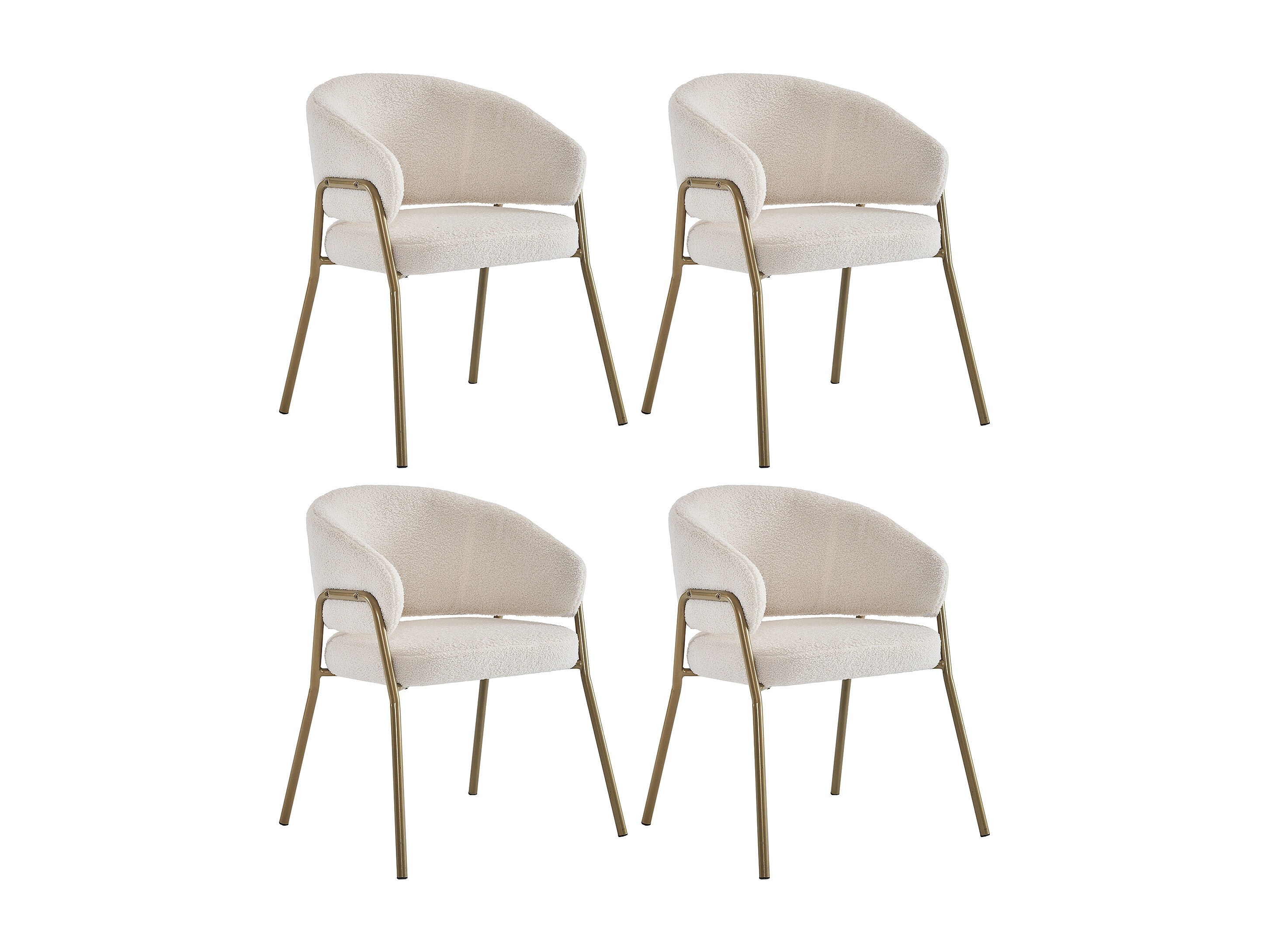 Lot de 4 chaises à manger en laine d'agneau avec accoudoirs et dossier - pieds en métal - blanc