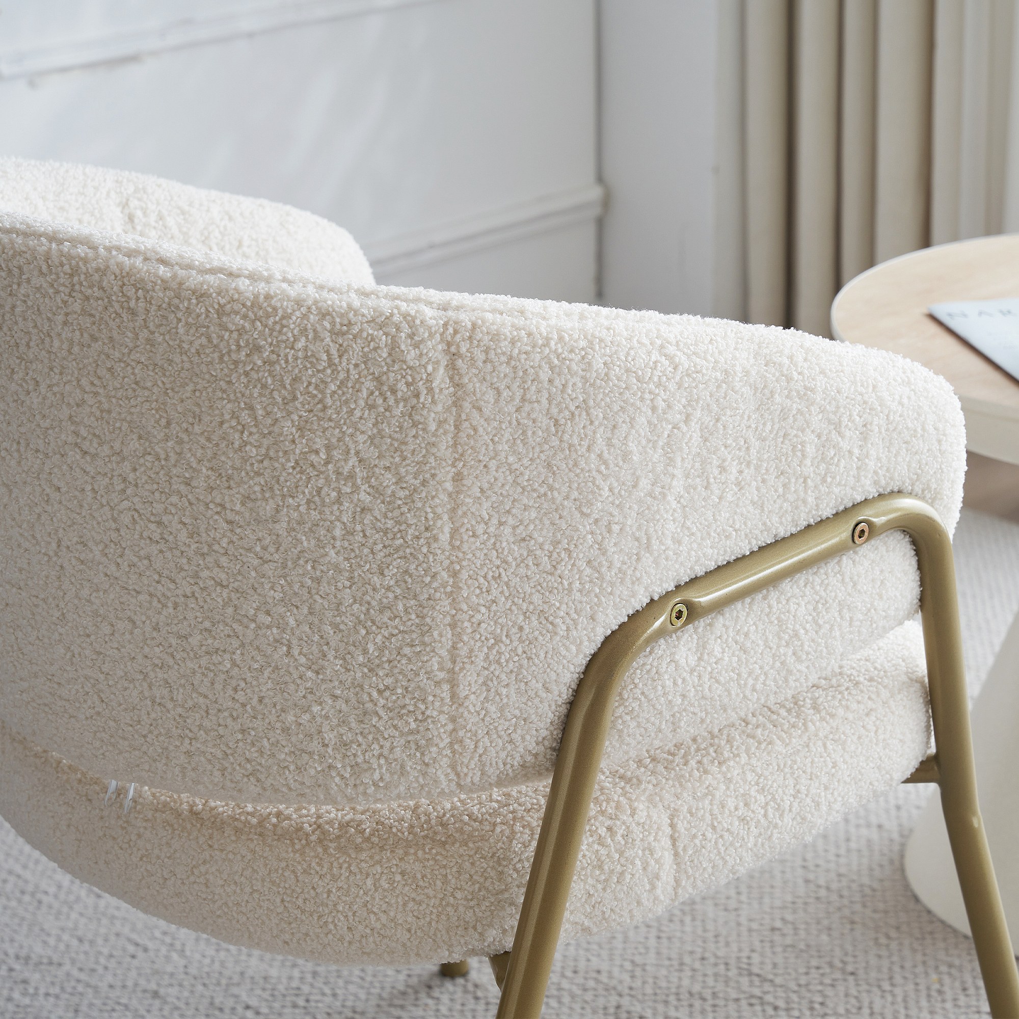 Chaises avec accoudoirs en Tissu pelucheux imitation laine blanc avec pieds en métal doré