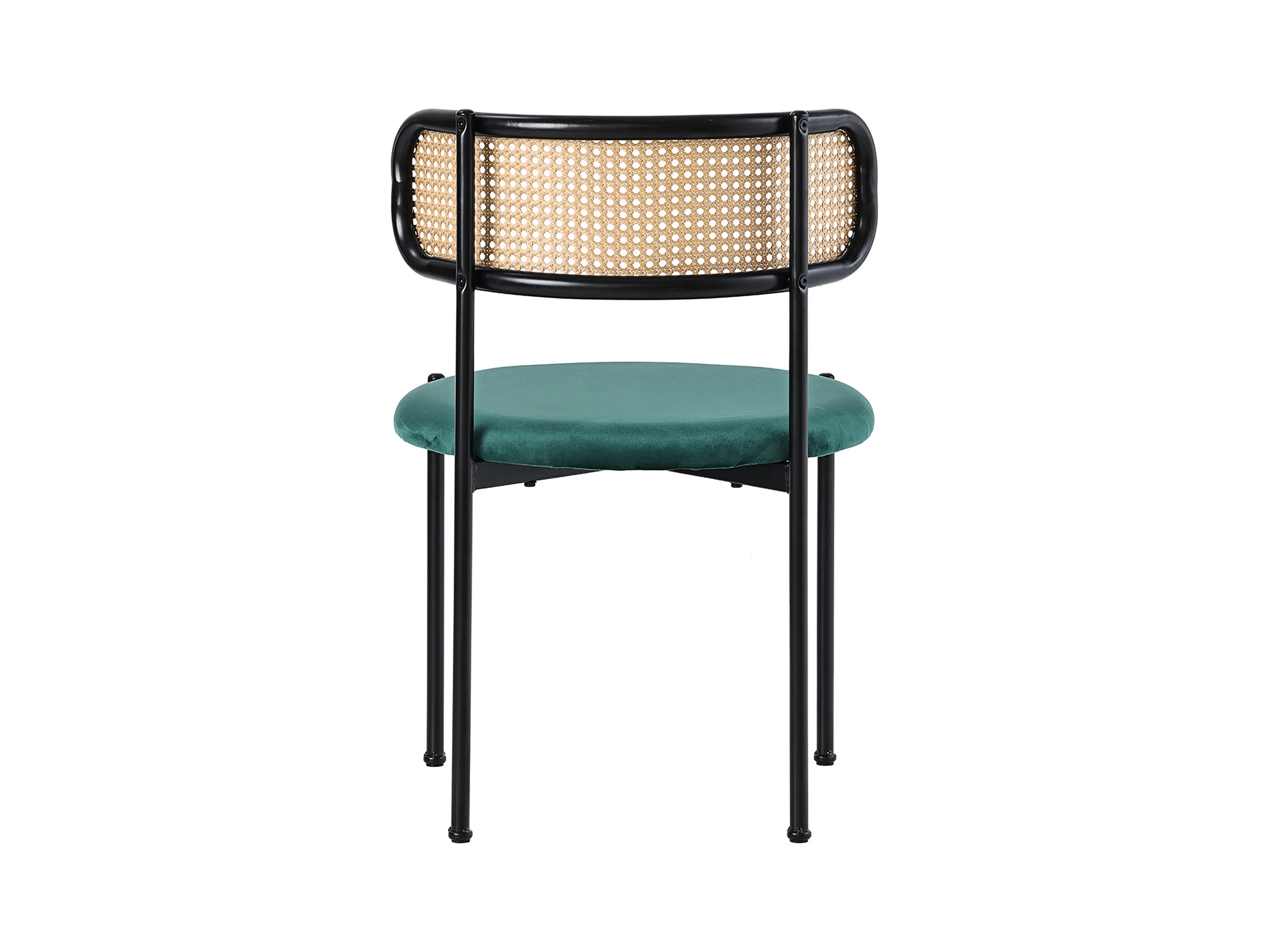 Lot de 4 chaises en velours, dossier en rotin et pied en métal noir - vert