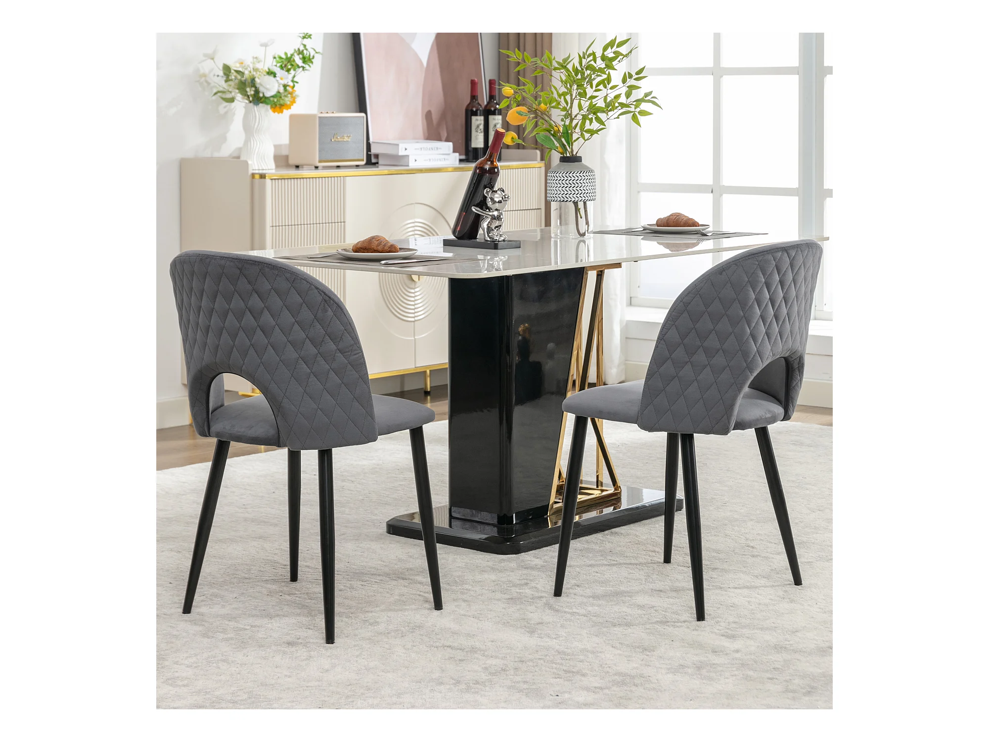 Lot de 2 chaises à manger avec dossier rembourré - pieds en métal doré - velours - gris