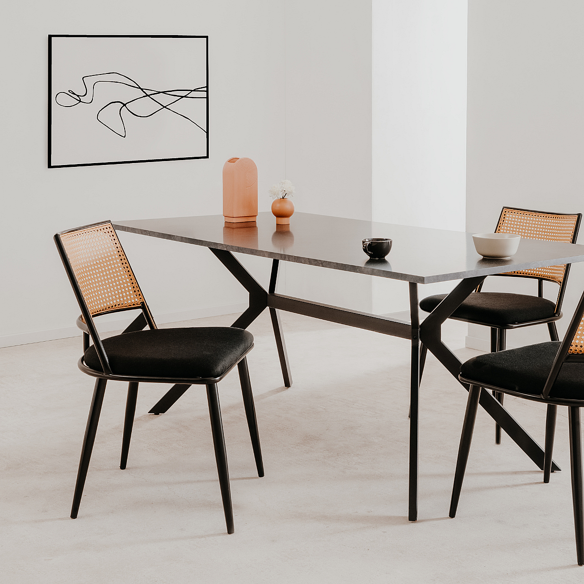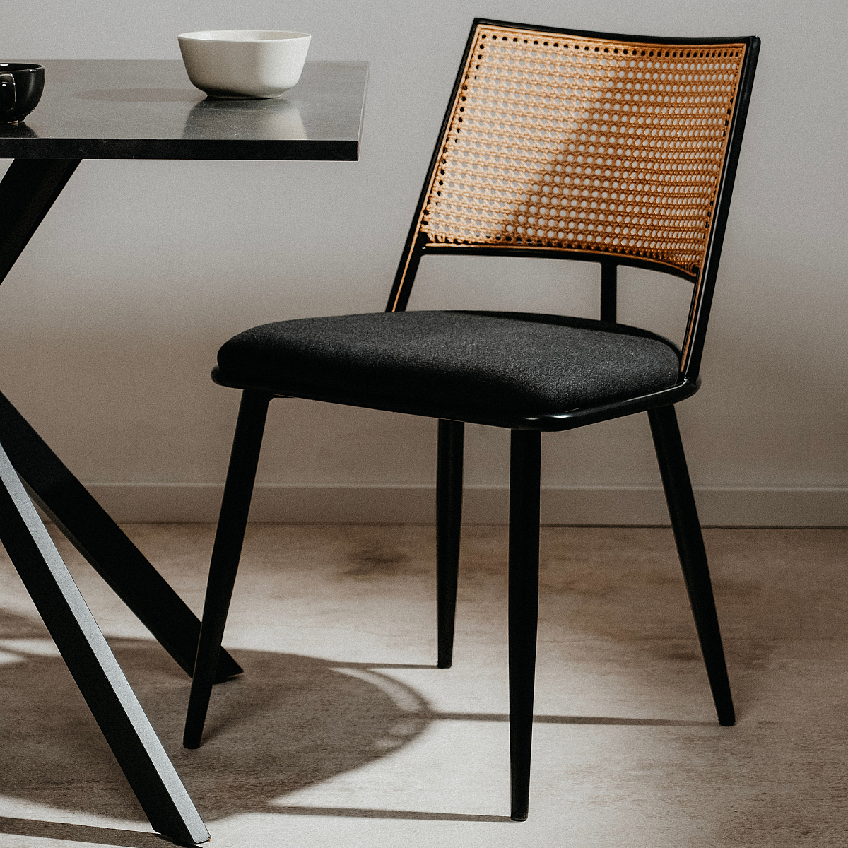 Lot de 4 chaises avec cannage naturel et structure en métal noir L47 cm - SCHILLER