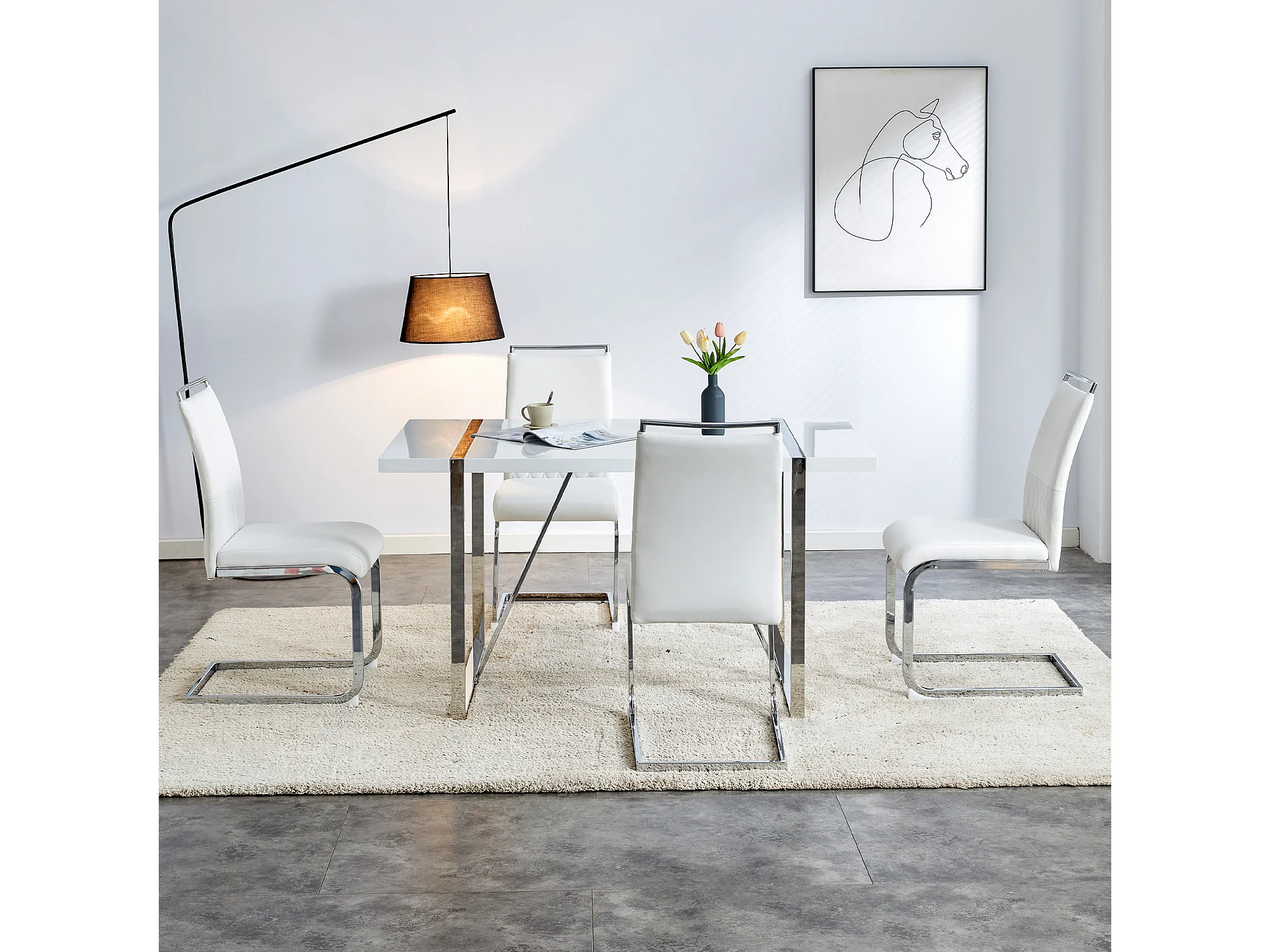 Lot de 4 chaises avec dossiers en similicuir et lin - Pieds en métal - Blanc