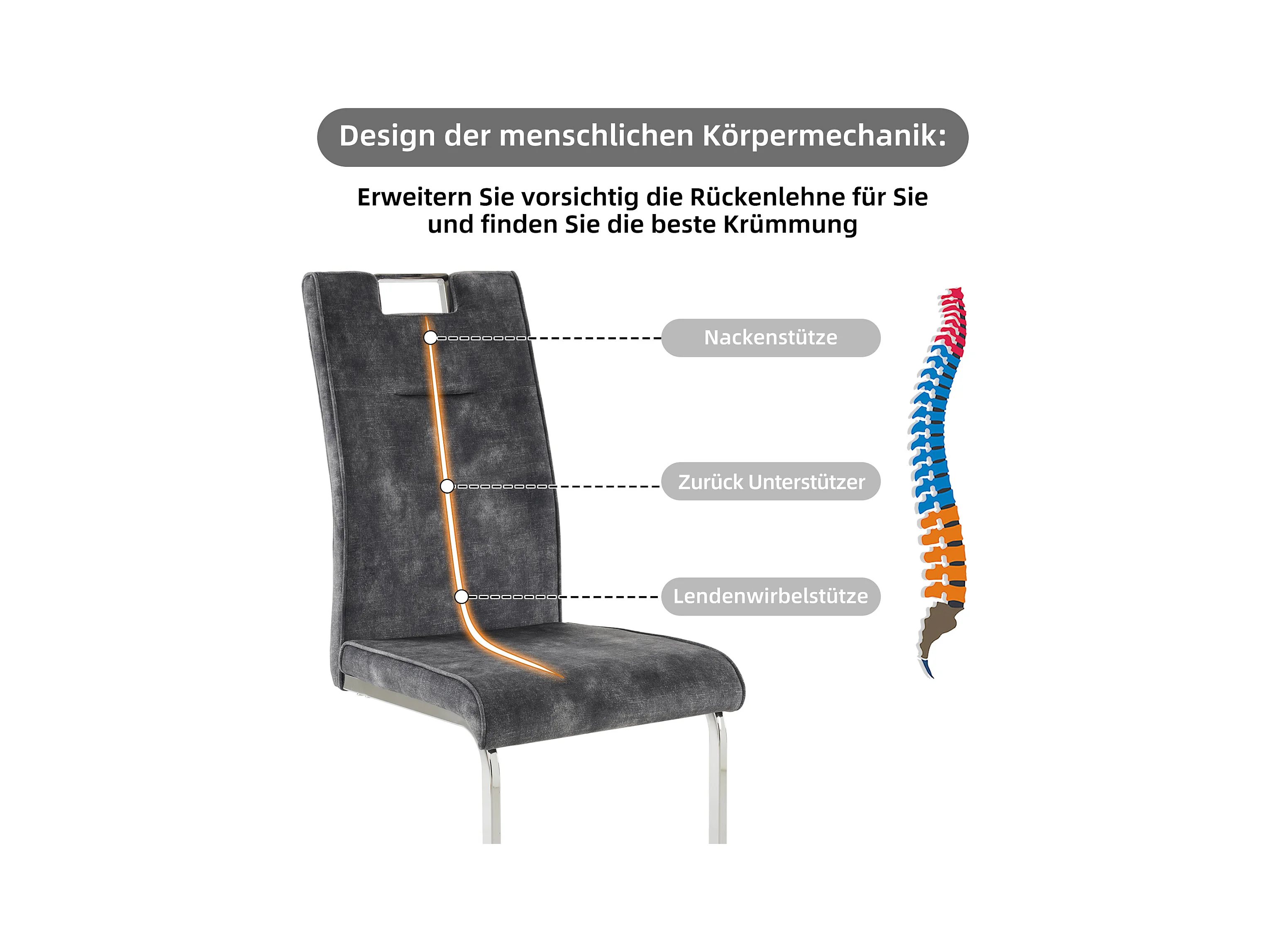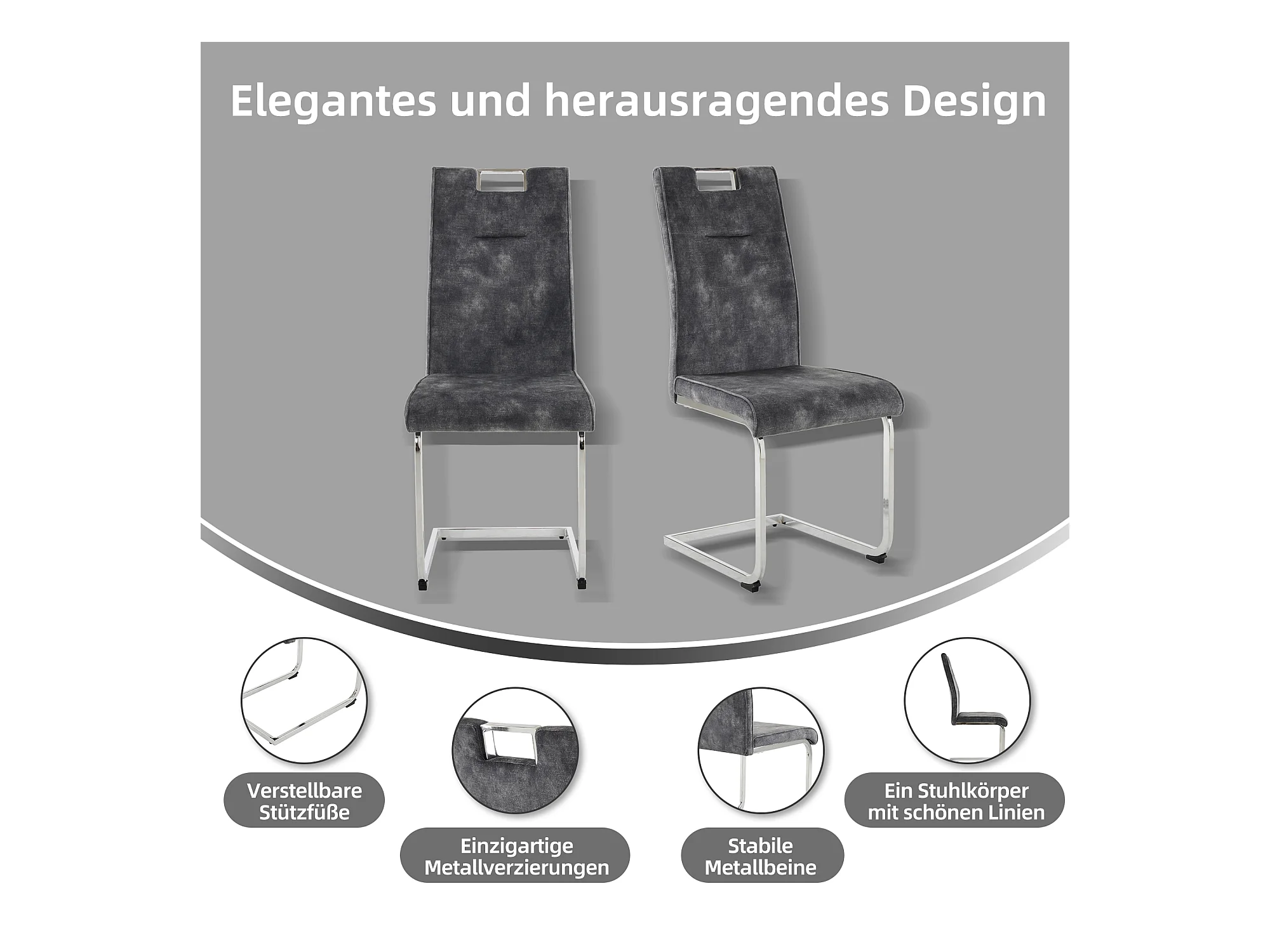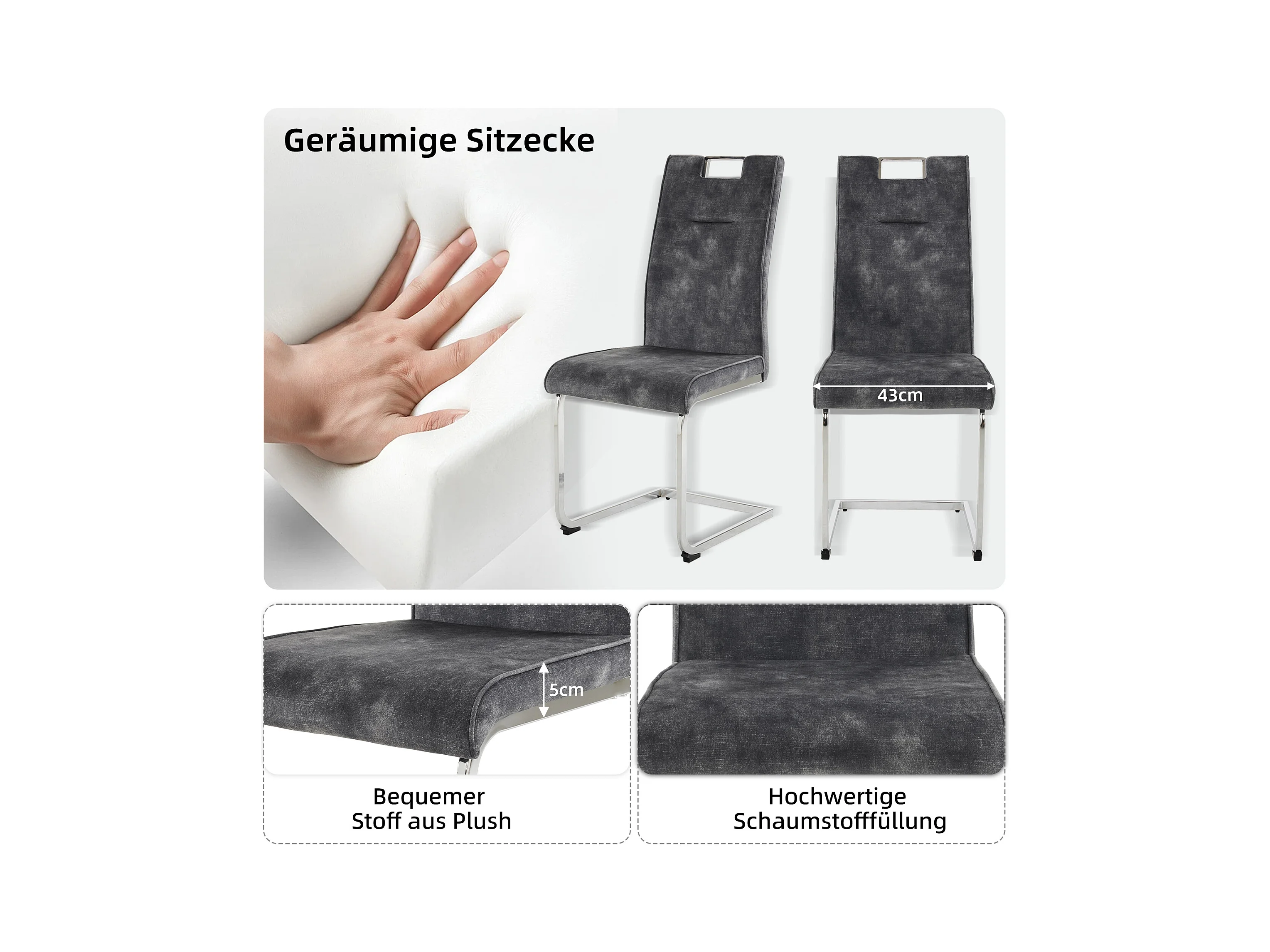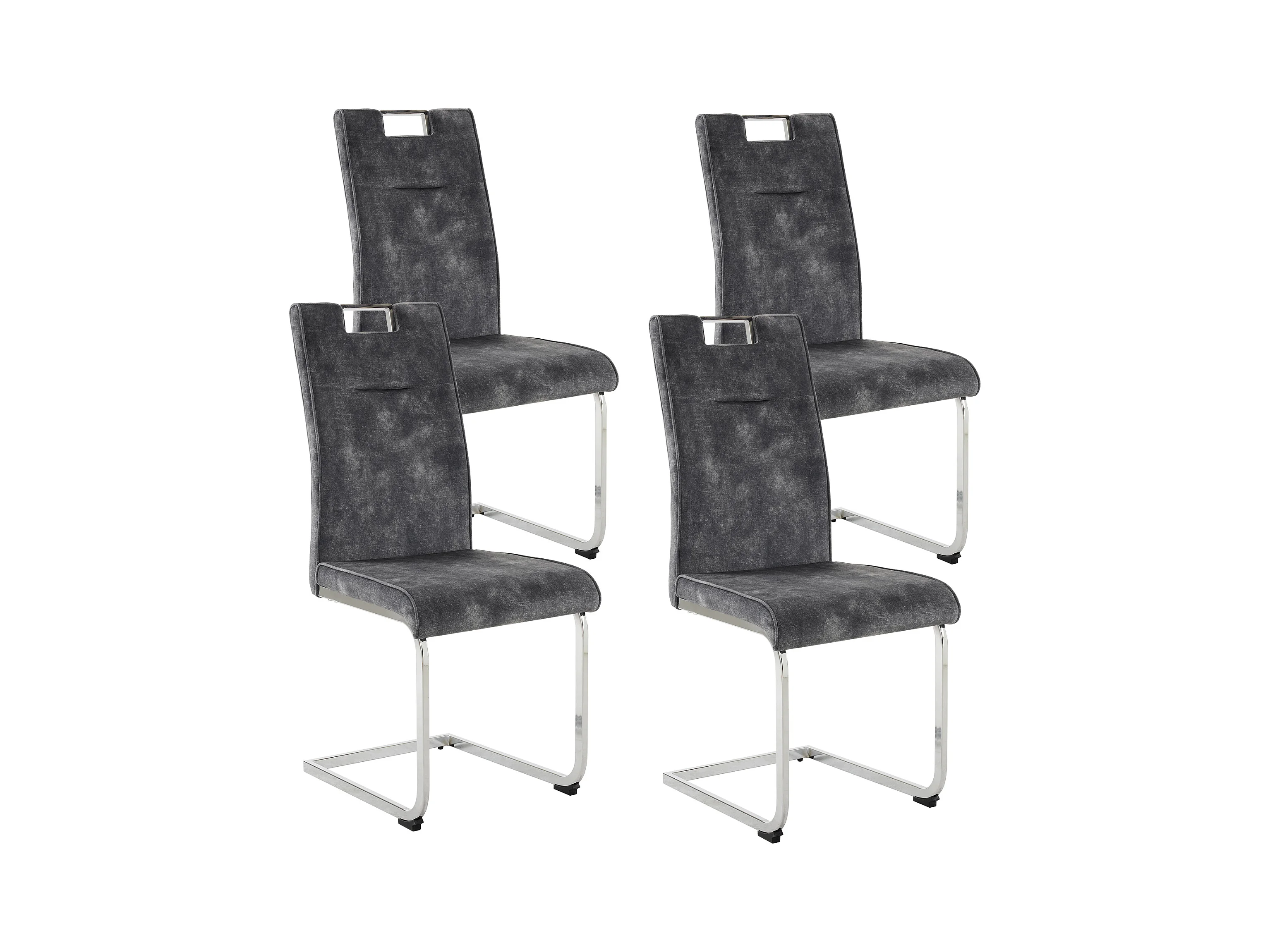 Lot de 4 Chaises cantilever en velours - Pièds en tube d'acier - Sans accoudoirs - Gris foncé