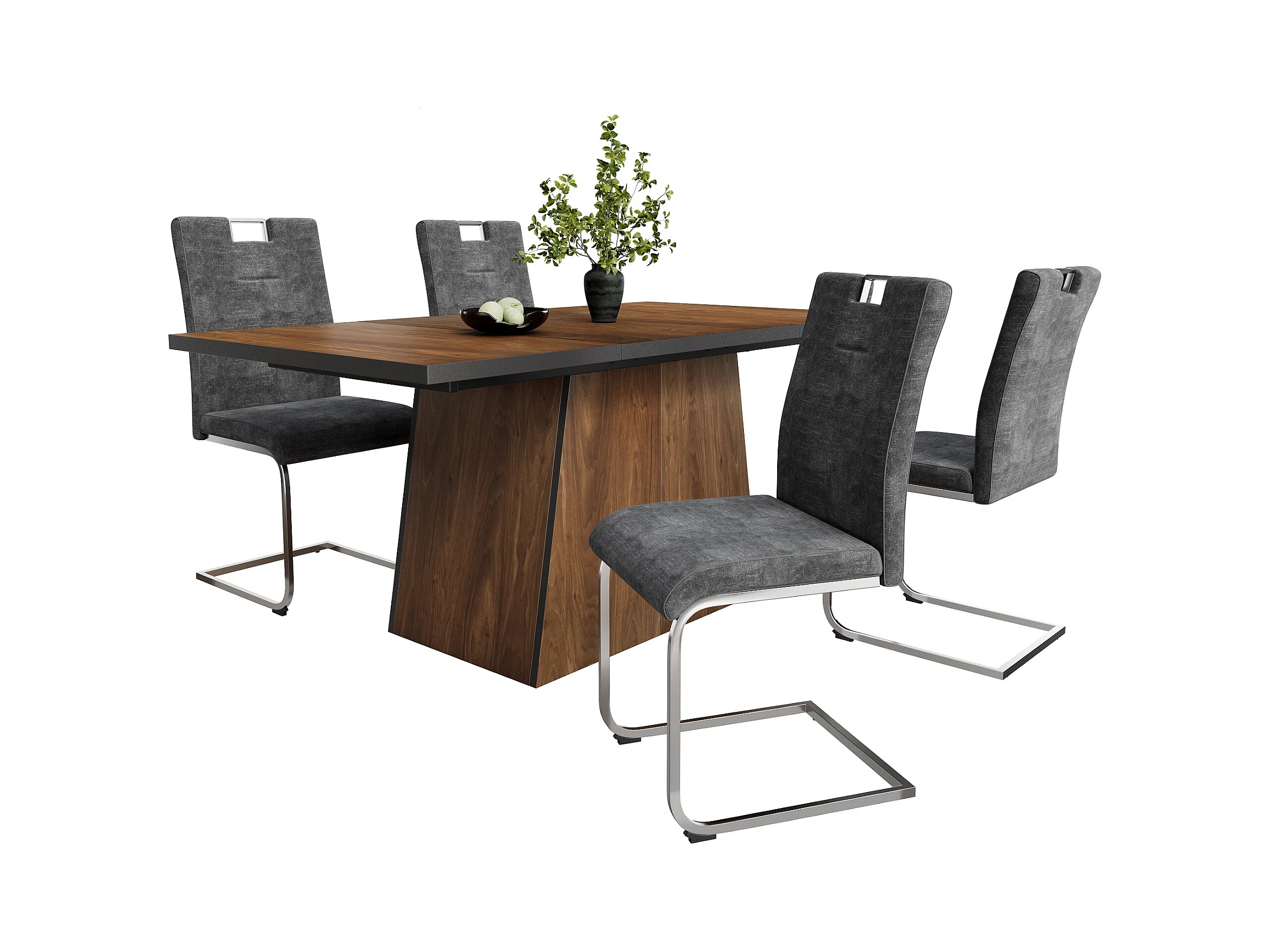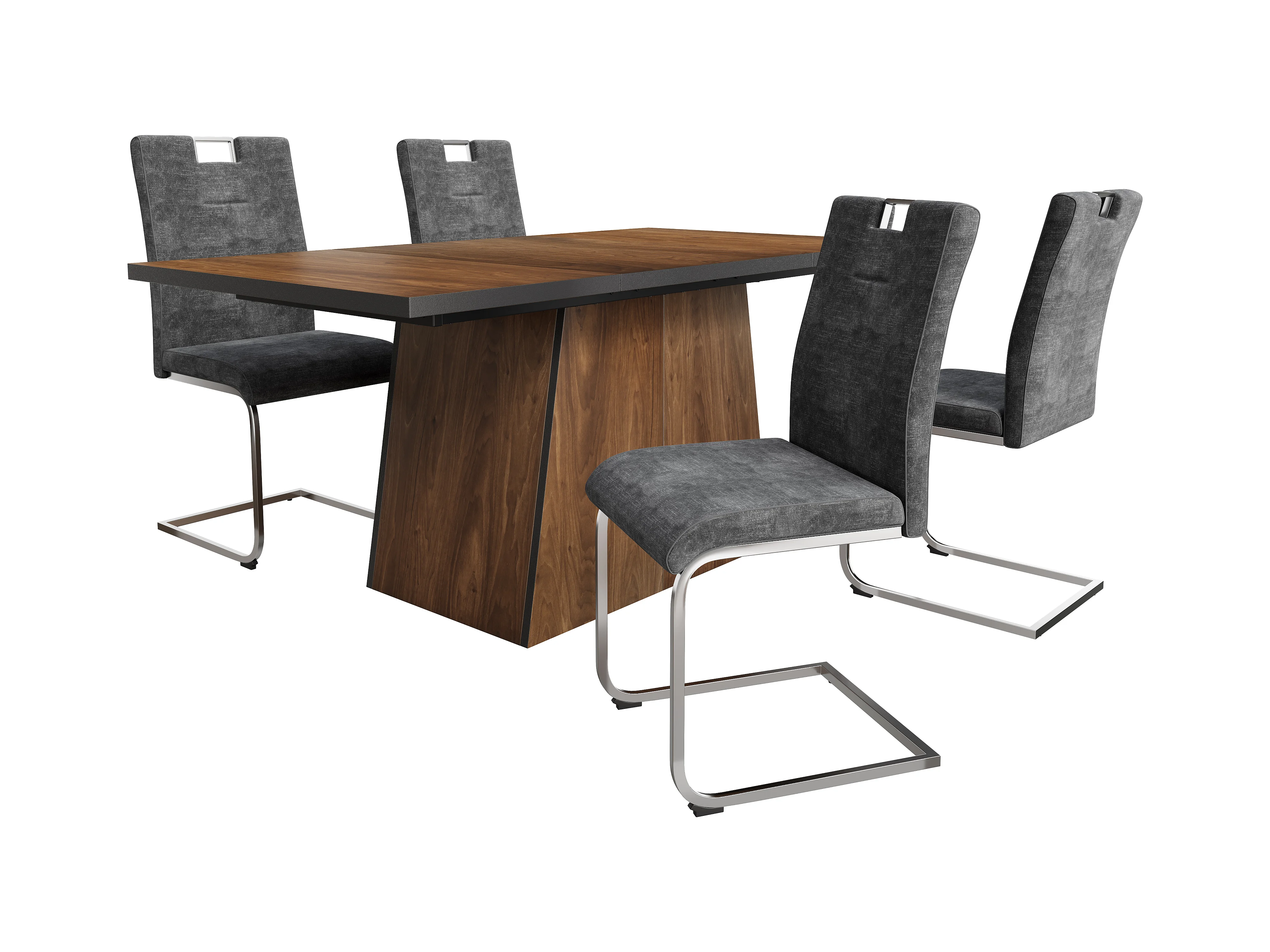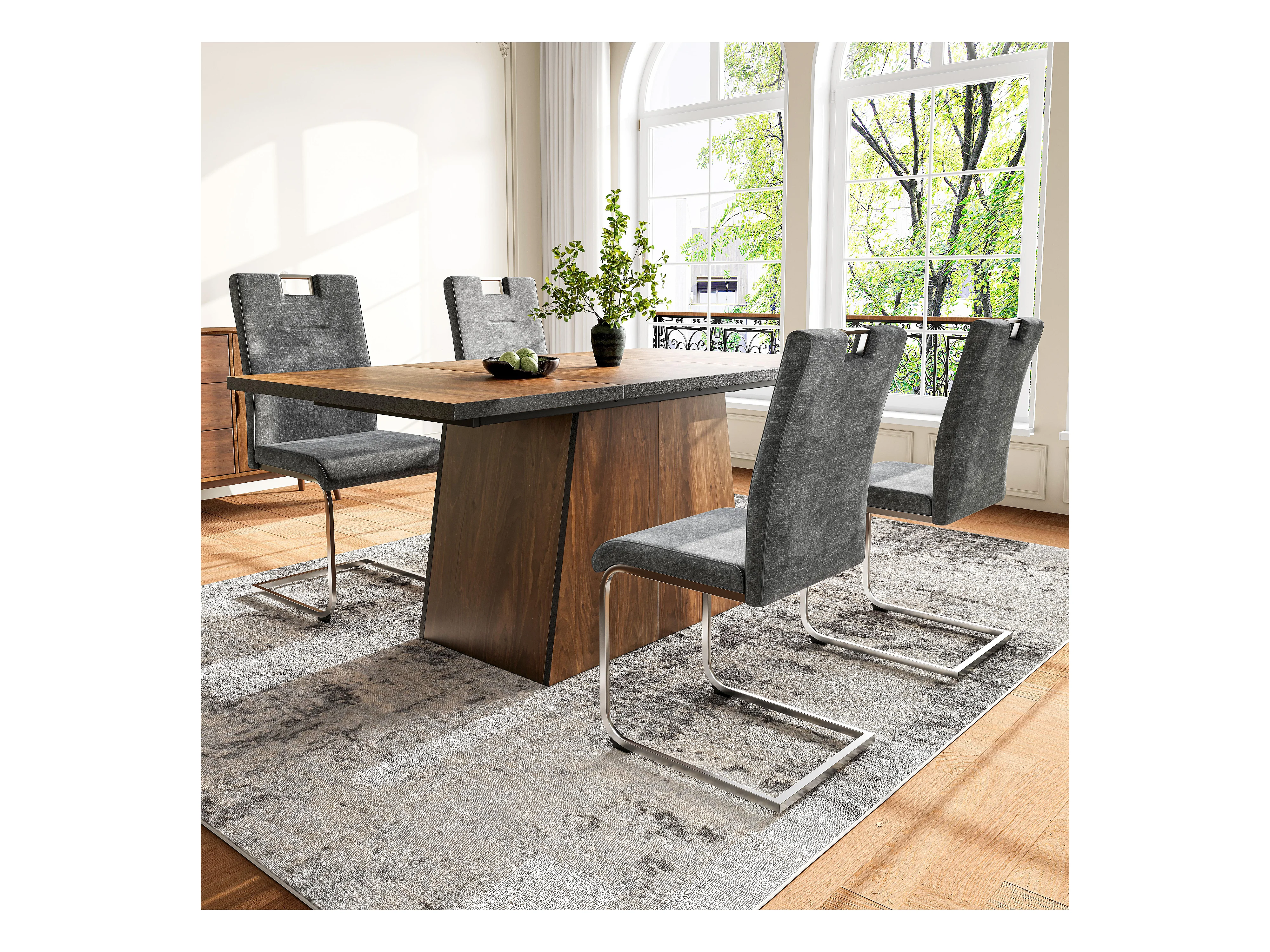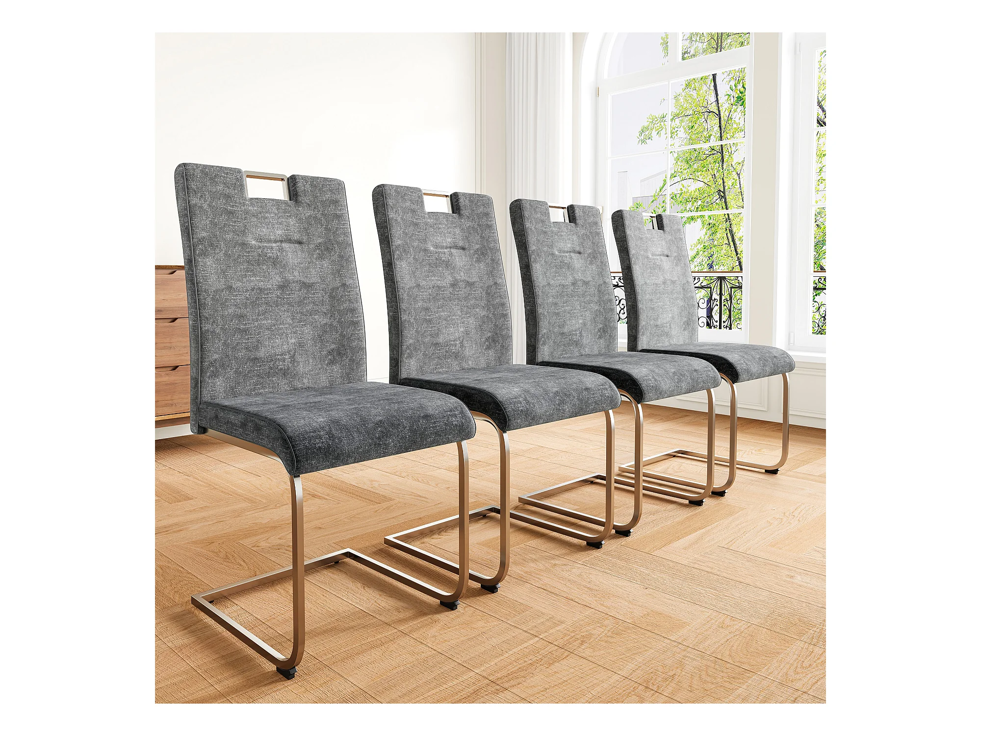 Lot de 4 Chaises cantilever en velours - Pièds en tube d'acier - Sans accoudoirs - Gris foncé