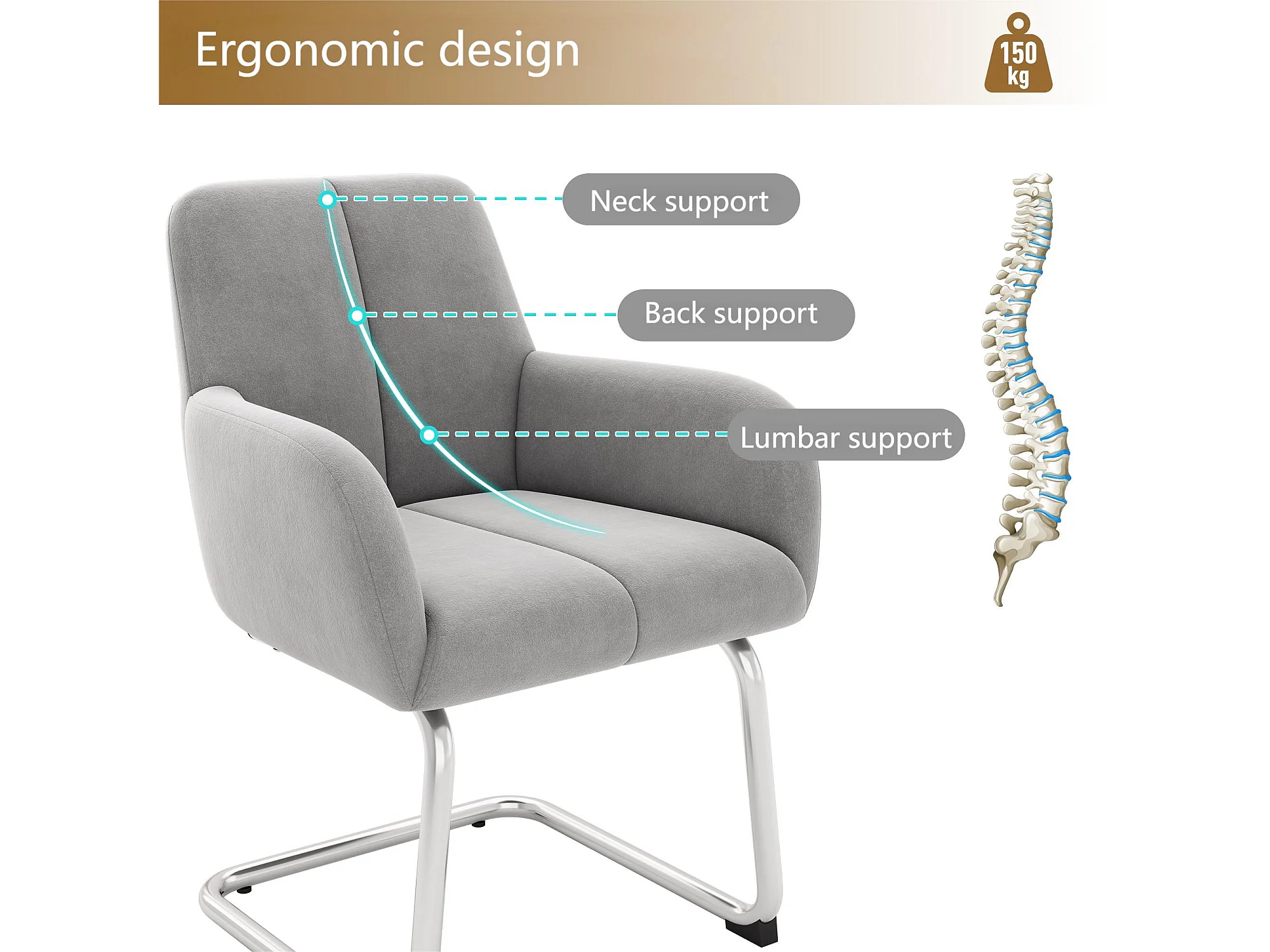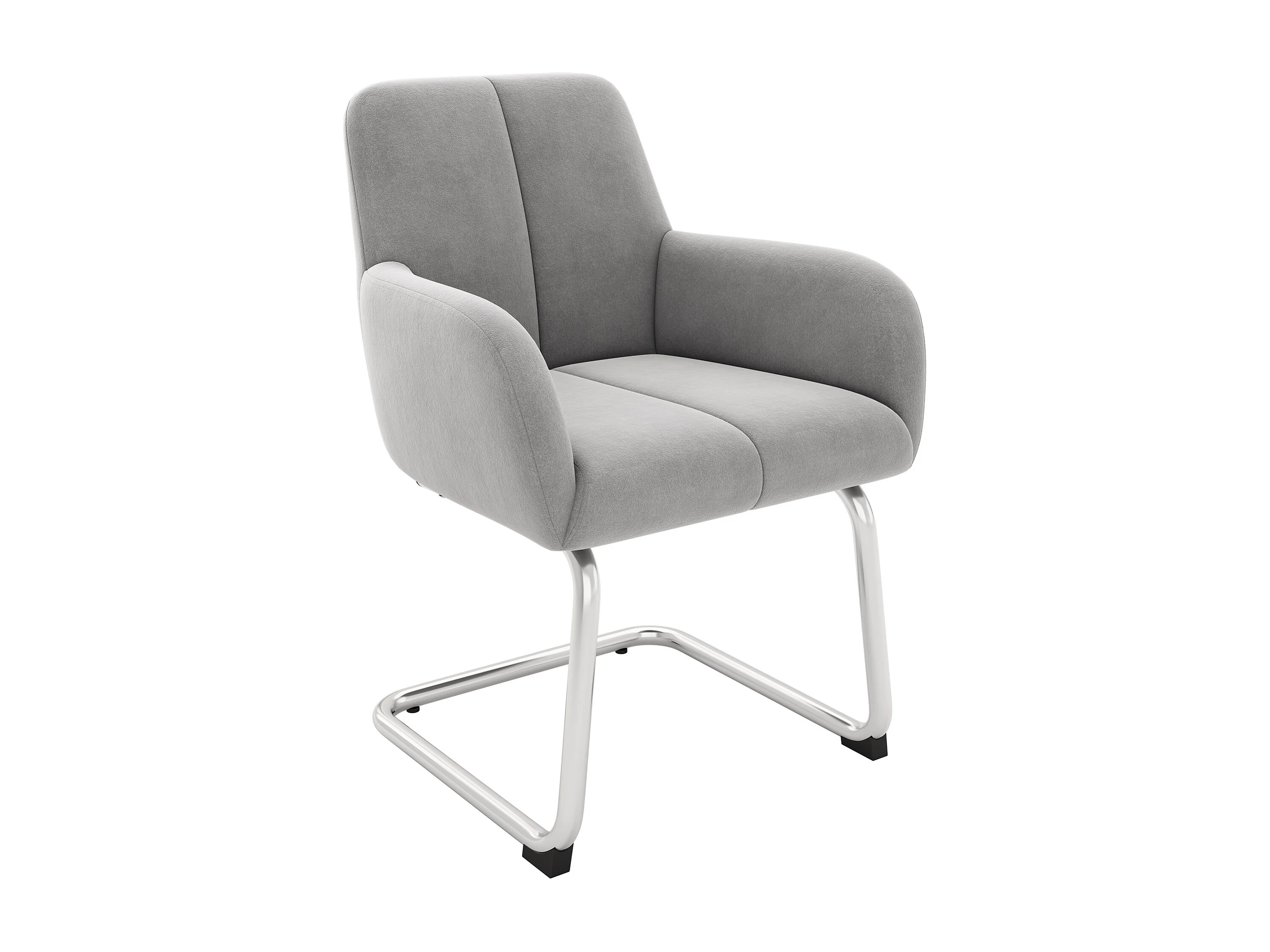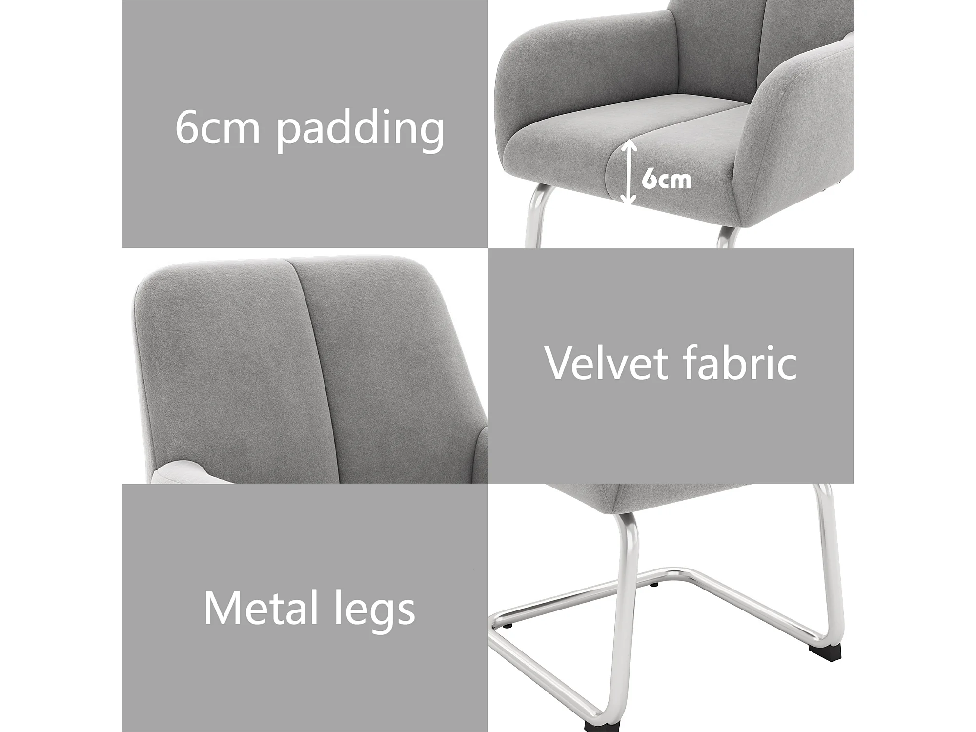 Lot de 4 Chaises cantilever recouvertes de velours - avec pieds en métal - Gris clair