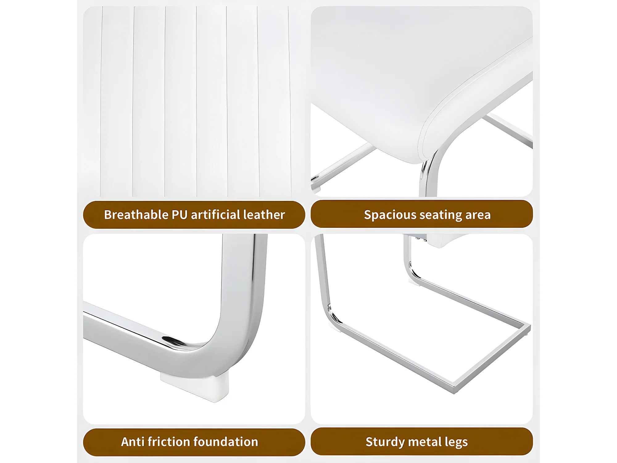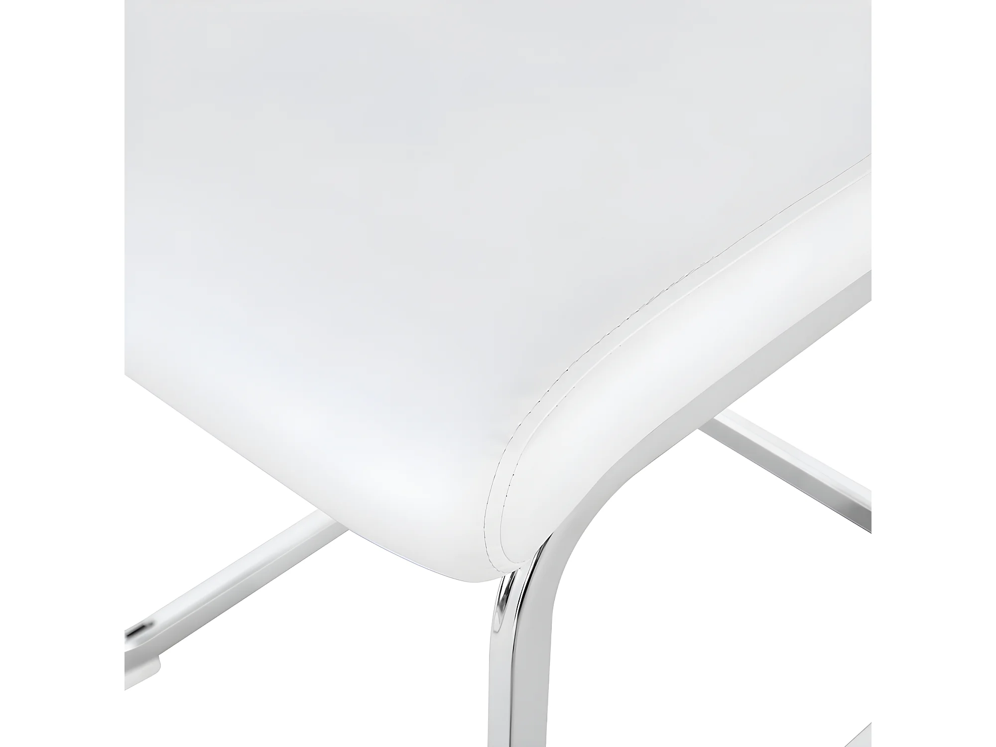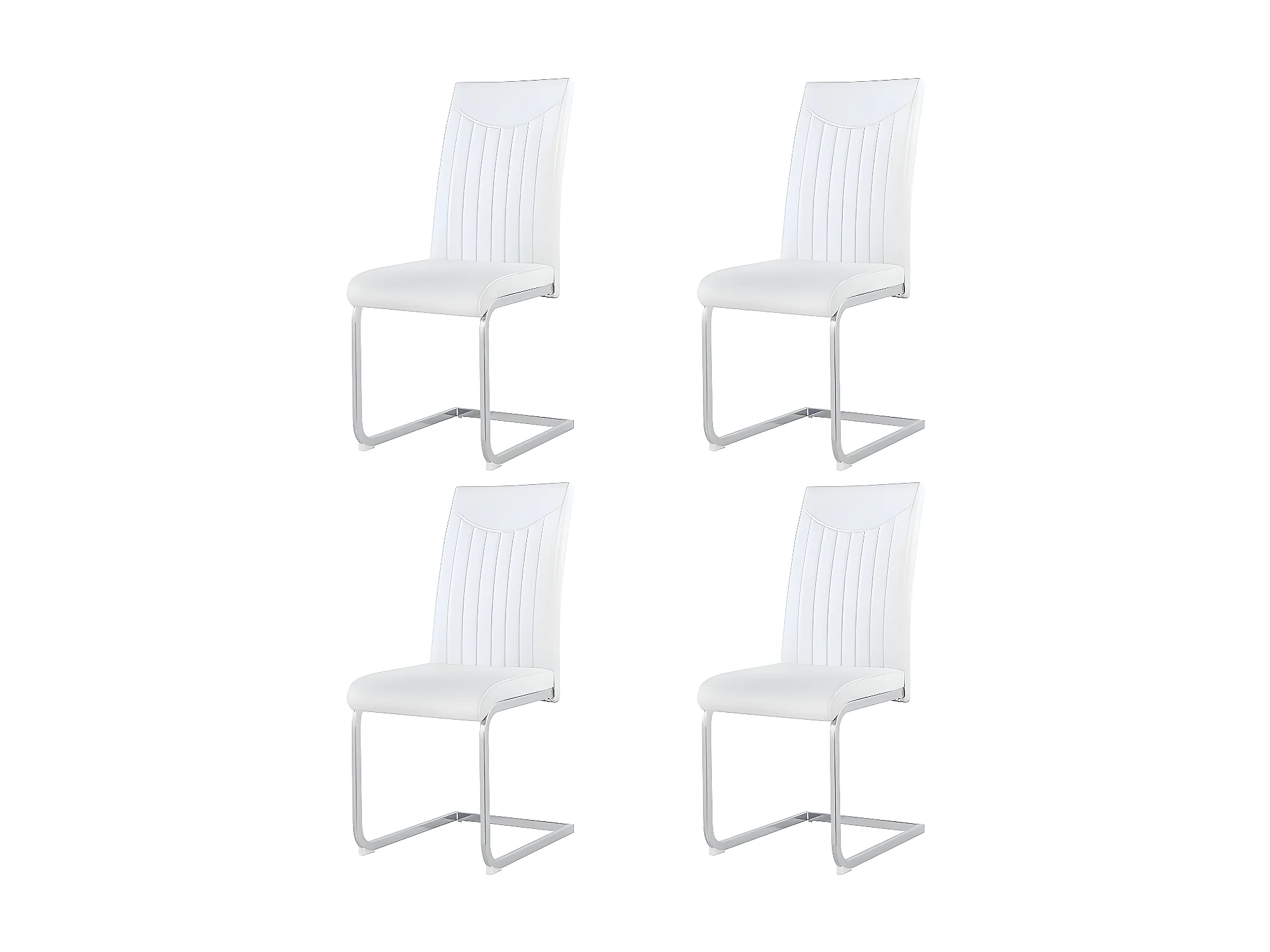 Lot de 4 Chaises cantilever - structure en métal chromé - rembourrées en similicuir - décoration rayée - Blanc