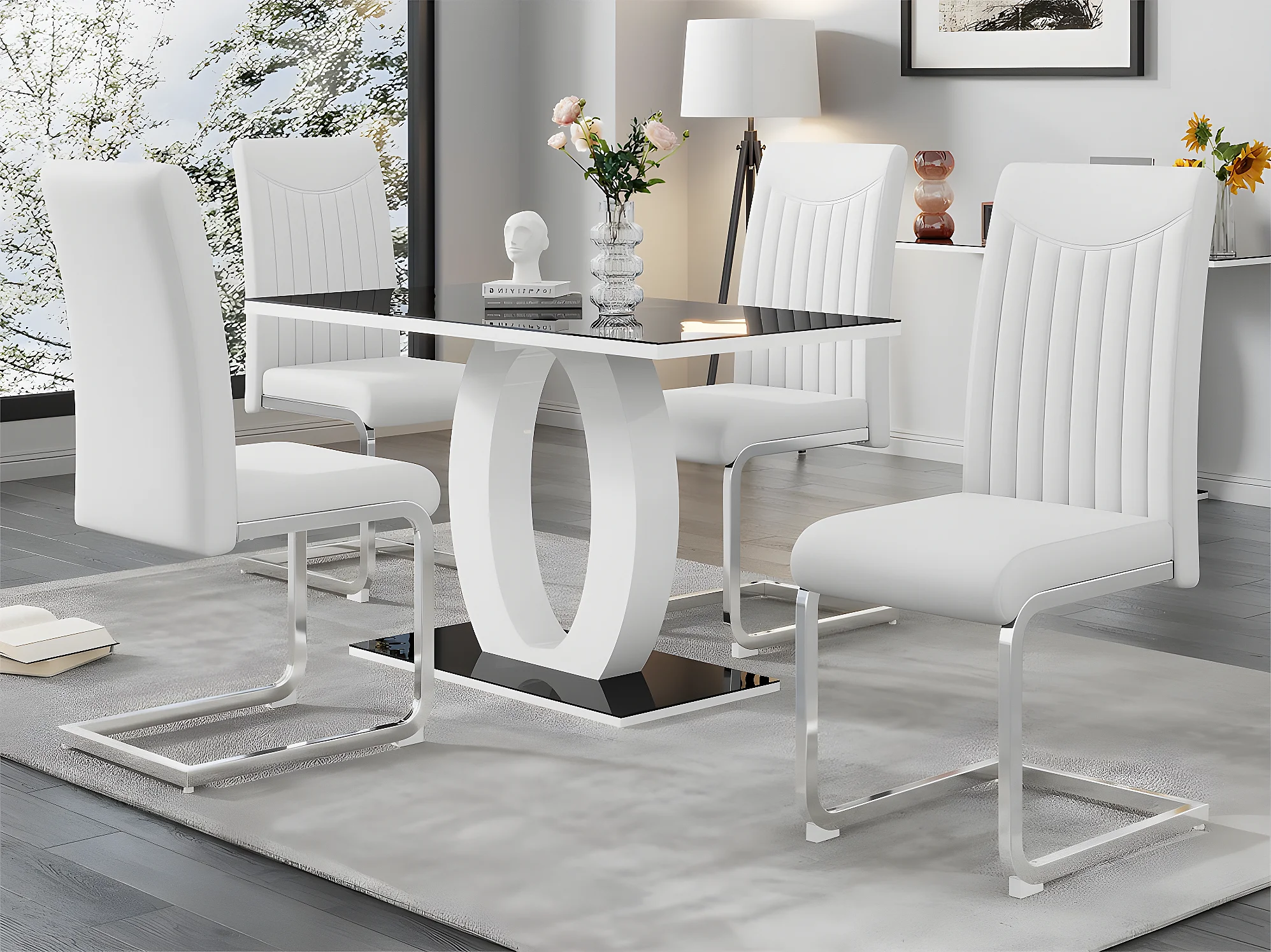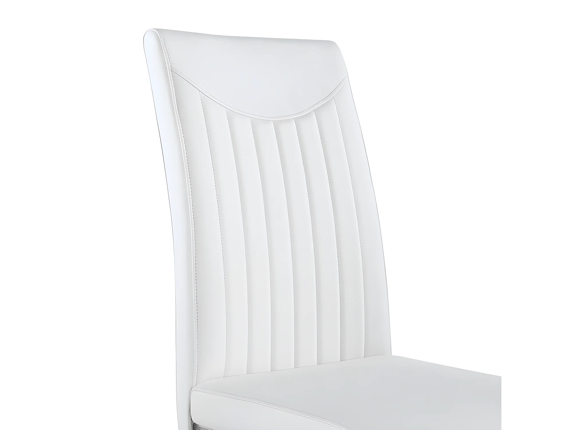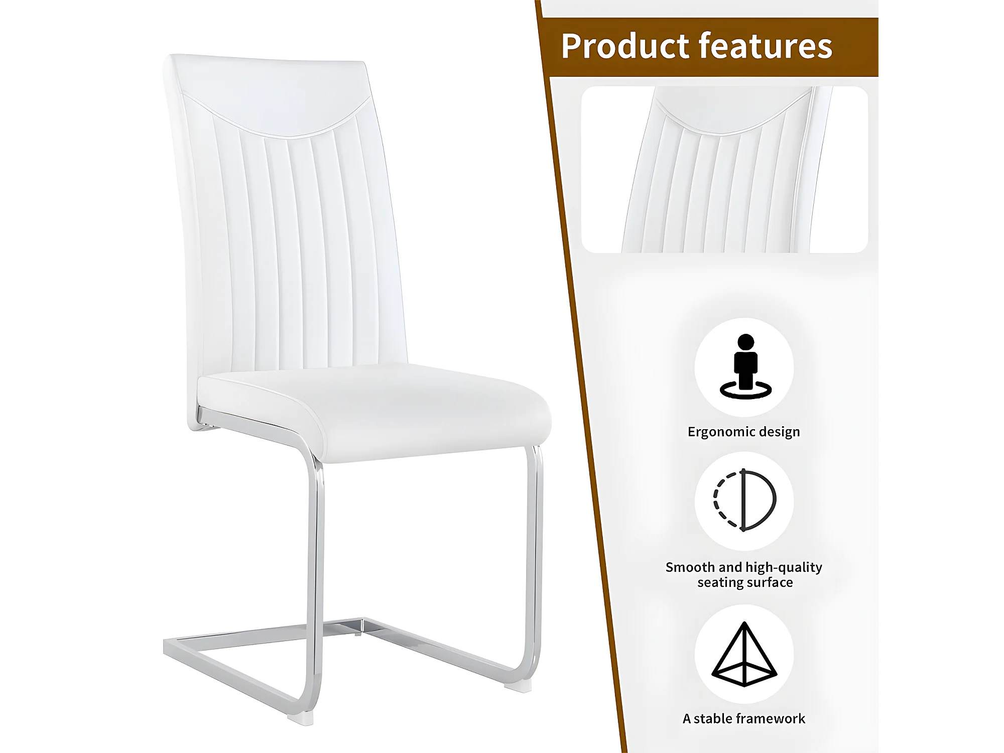 Lot de 4 Chaises cantilever - structure en métal chromé - rembourrées en similicuir - décoration rayée - Blanc