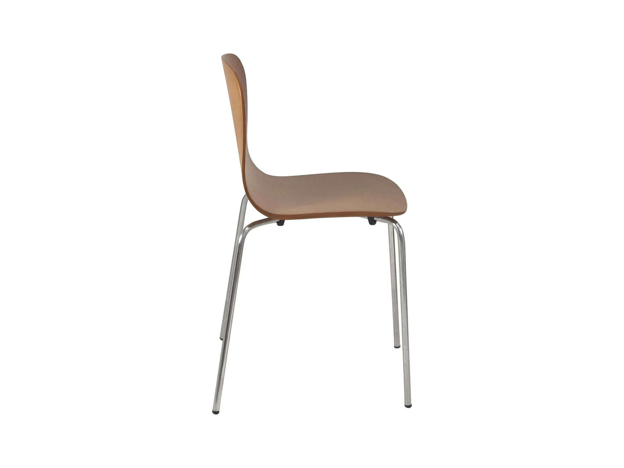 Lot 4 chaises de cuisine design retro siège bois pieds chrome RIO (bois foncé)