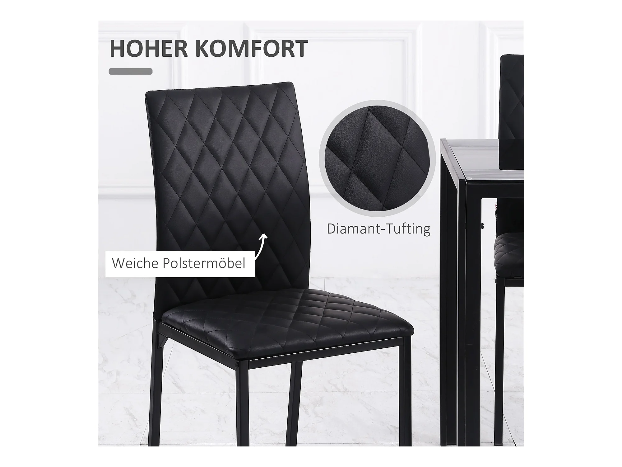 Lot de 4 chaises de salle à manger en PU noir avec pieds en métal - style moderne