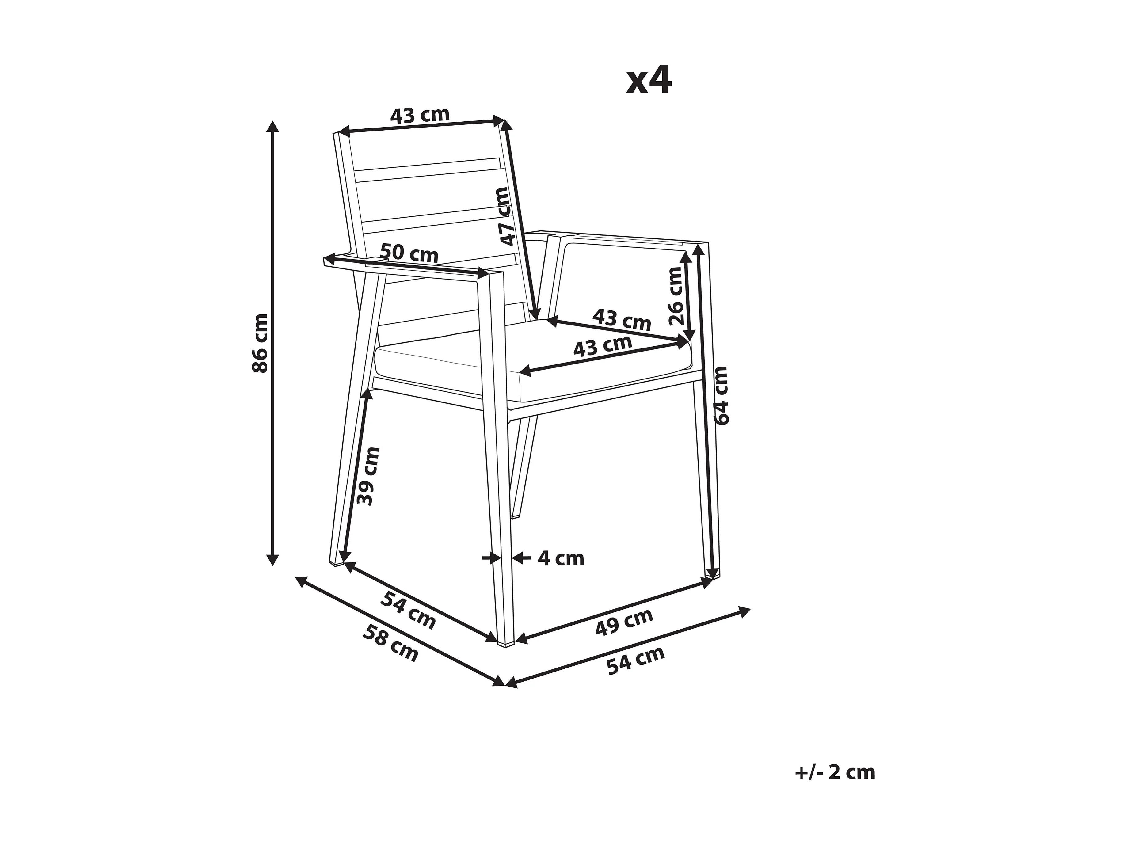Lot de 4 chaises de jardin avec coussins TAVIANO Métal Blanc