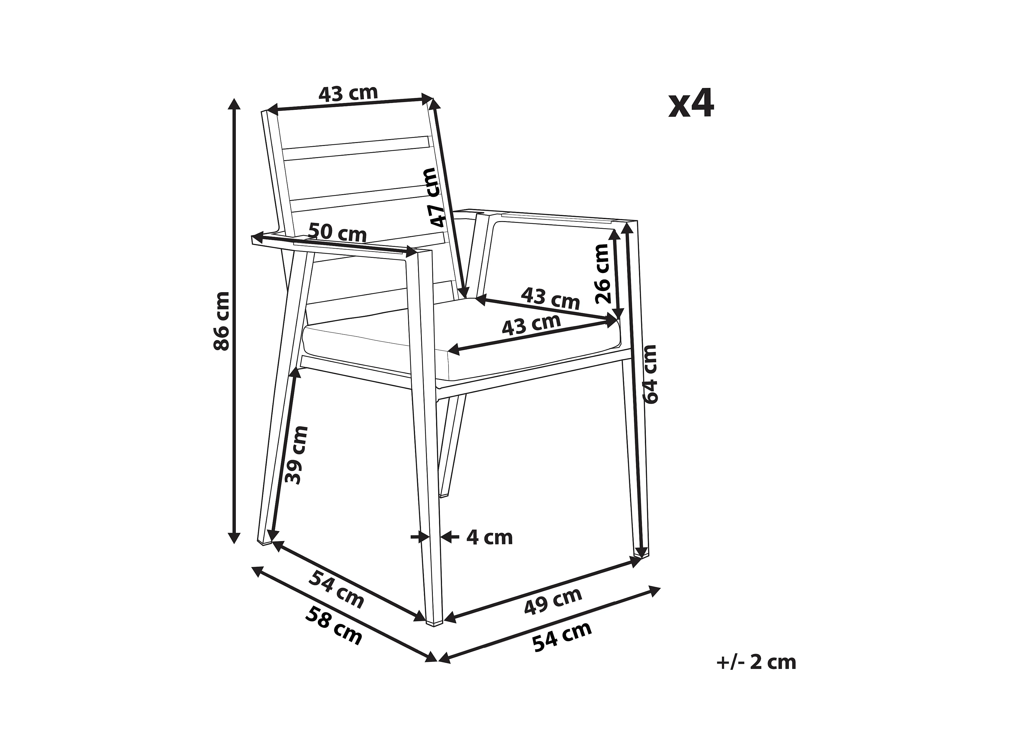Lot de 4 chaises de jardin avec coussins TAVIANO Métal Noir