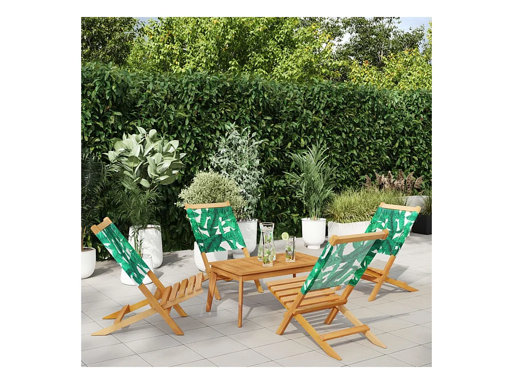Lot de 4 Chaises de jardin pliantes vert tissu et bois massif FR46312