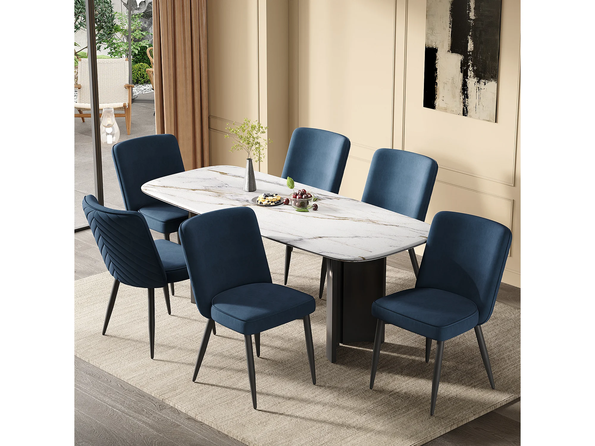 Lot de 4 chaises de salle à manger - 63 x 48 x 85 cm - pour salles à manger/salons/cafés - Style moderne - velours - bleu foncé