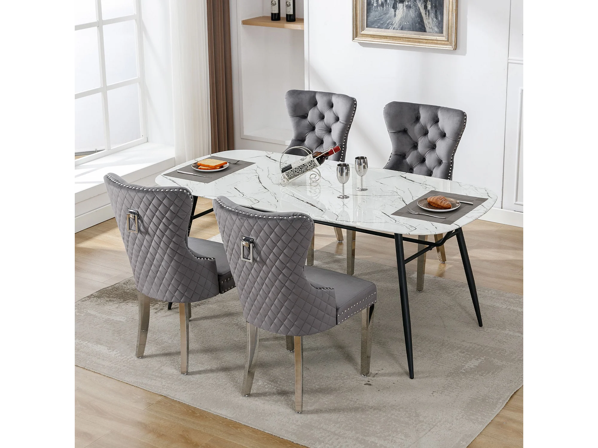 Lot de 4 chaises de salle à manger - anneaux de porte originaux au dossier - velours gris