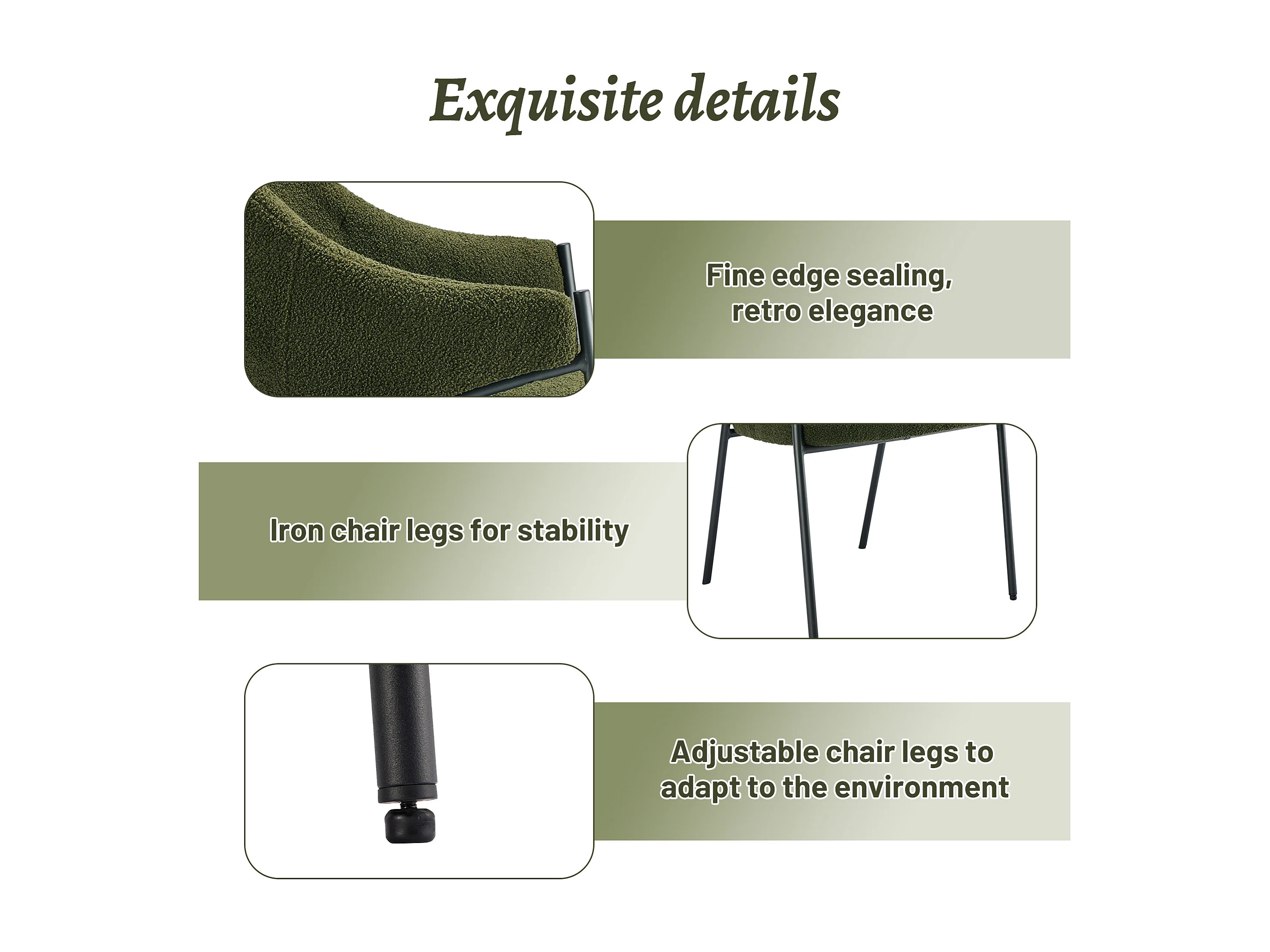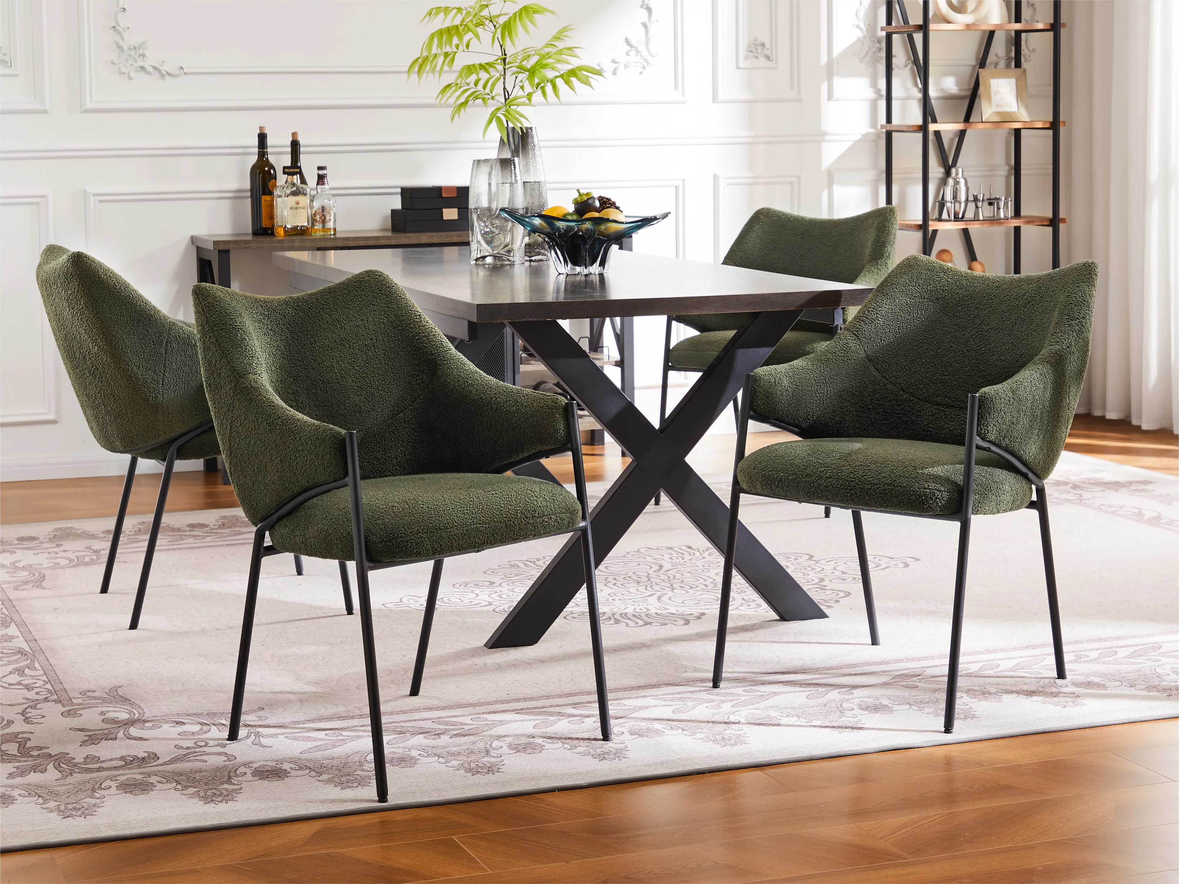 Lot de 4 Chaises de salle à manger avec accoudoirs - tissu en sherpa - style moderne - Vert