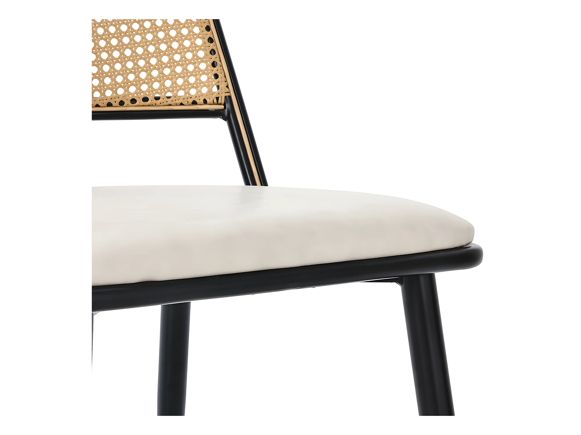 Lot de 4 Chaises de salle à manger avec coussin en similicuir et dossier en rotin PE - Noir