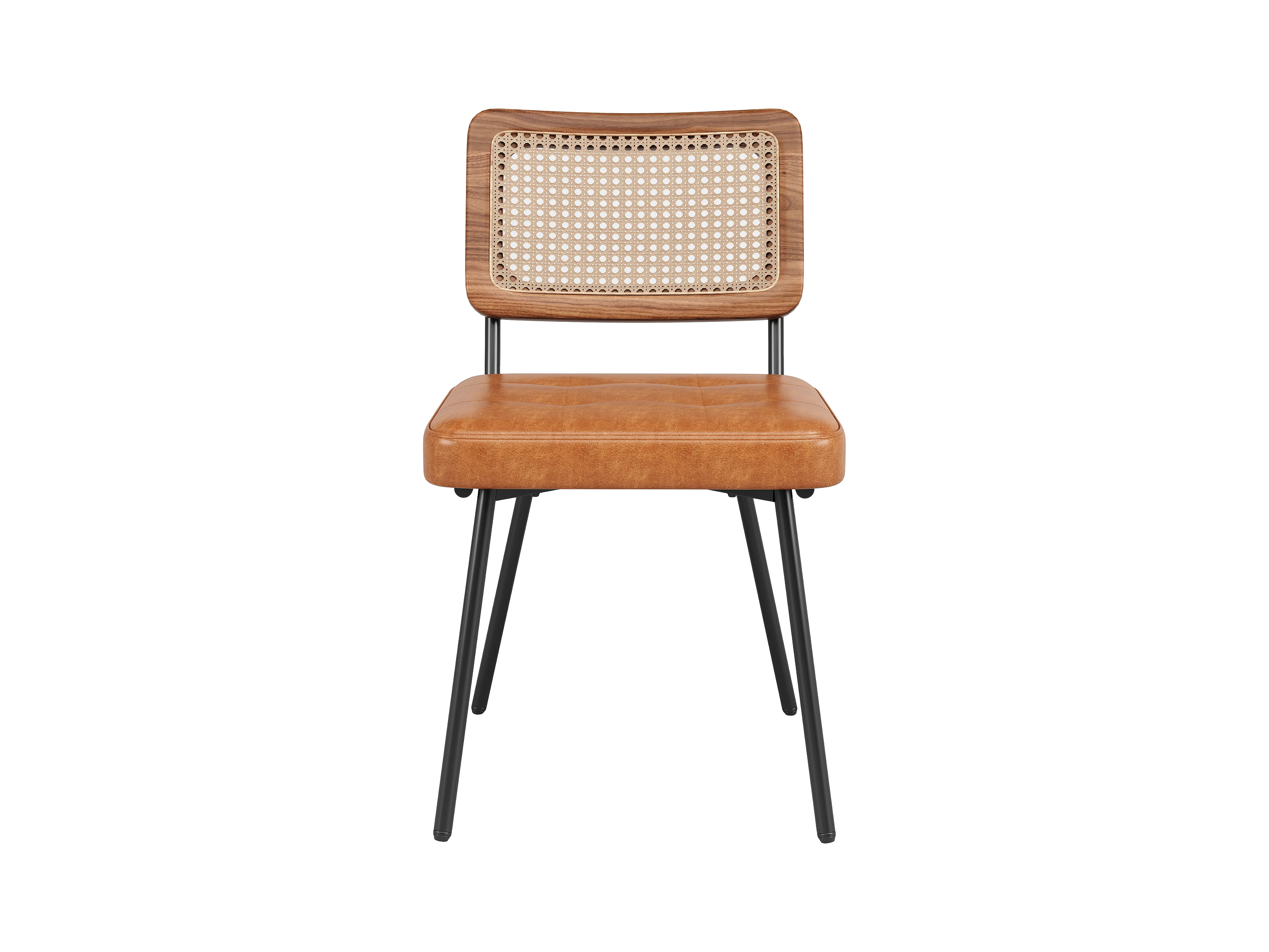 Lot de 2 chaises à manger avec dossier en rotin - pieds en métal - similicuir - marron