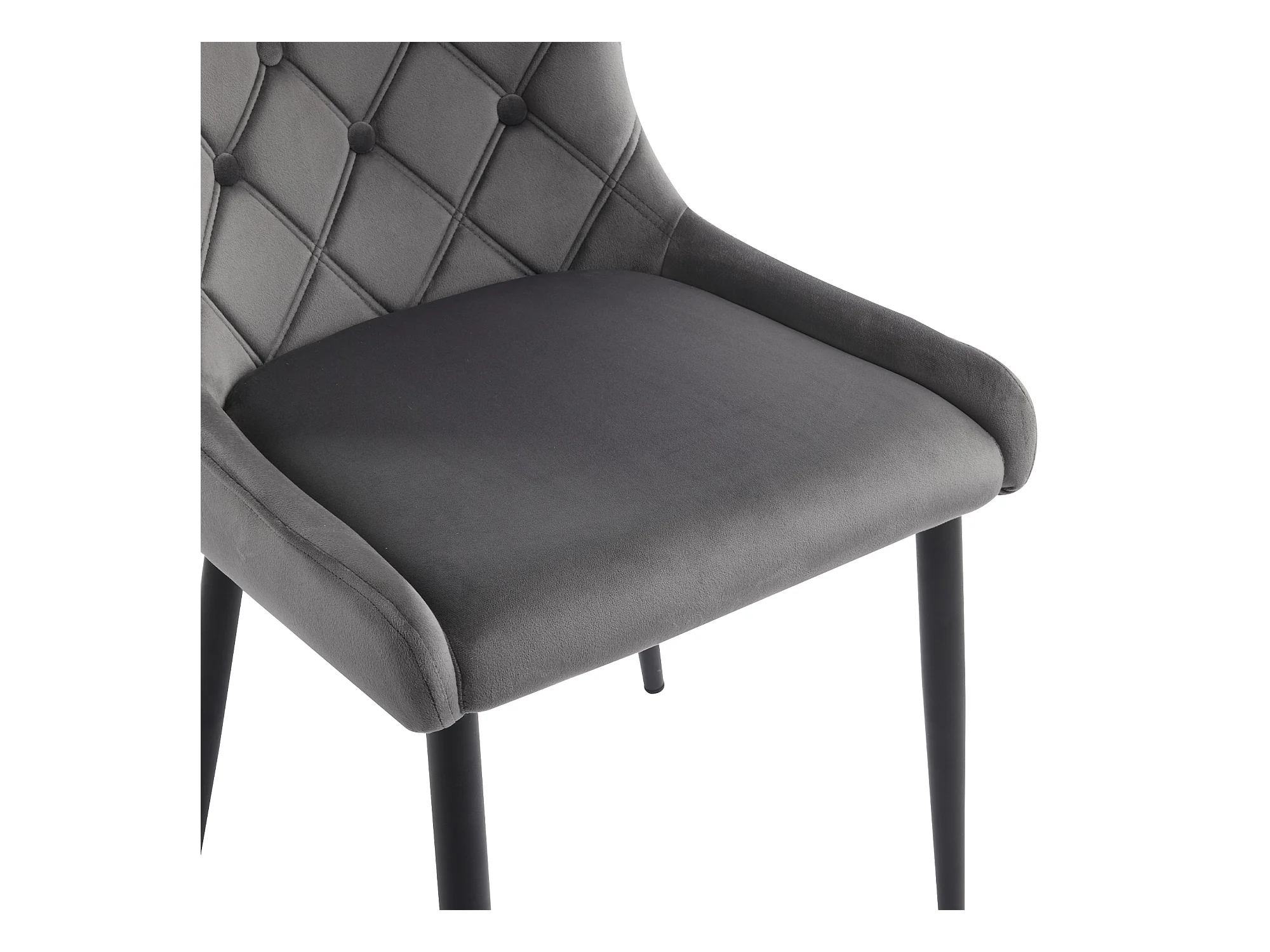 Lot de 4 chaises de cuisine en velours gris, pieds en métal noir