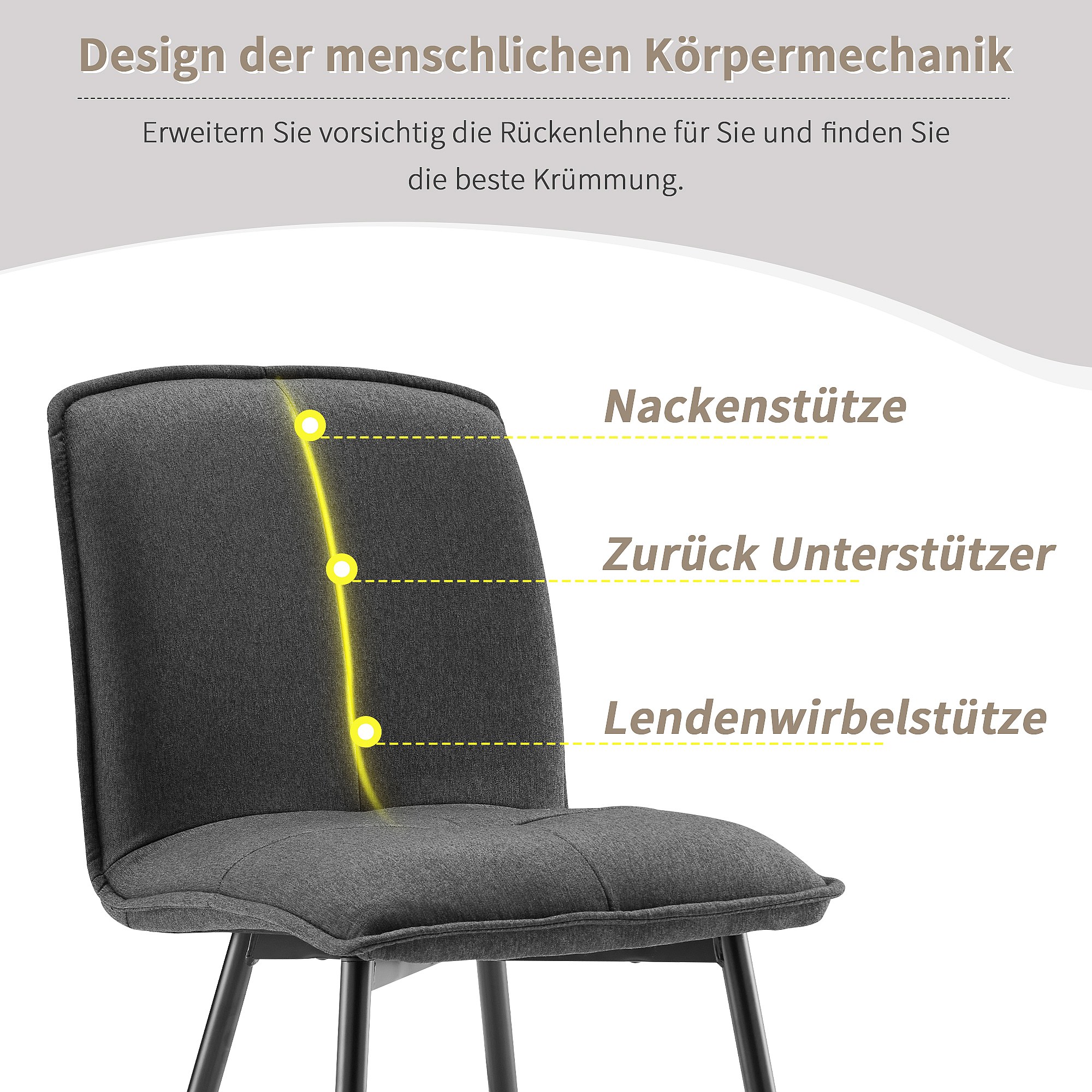 Lot de 4 Chaises de salle à manger avec dossier - 46x40x86 cm - Coton Lin et Métal - Gris