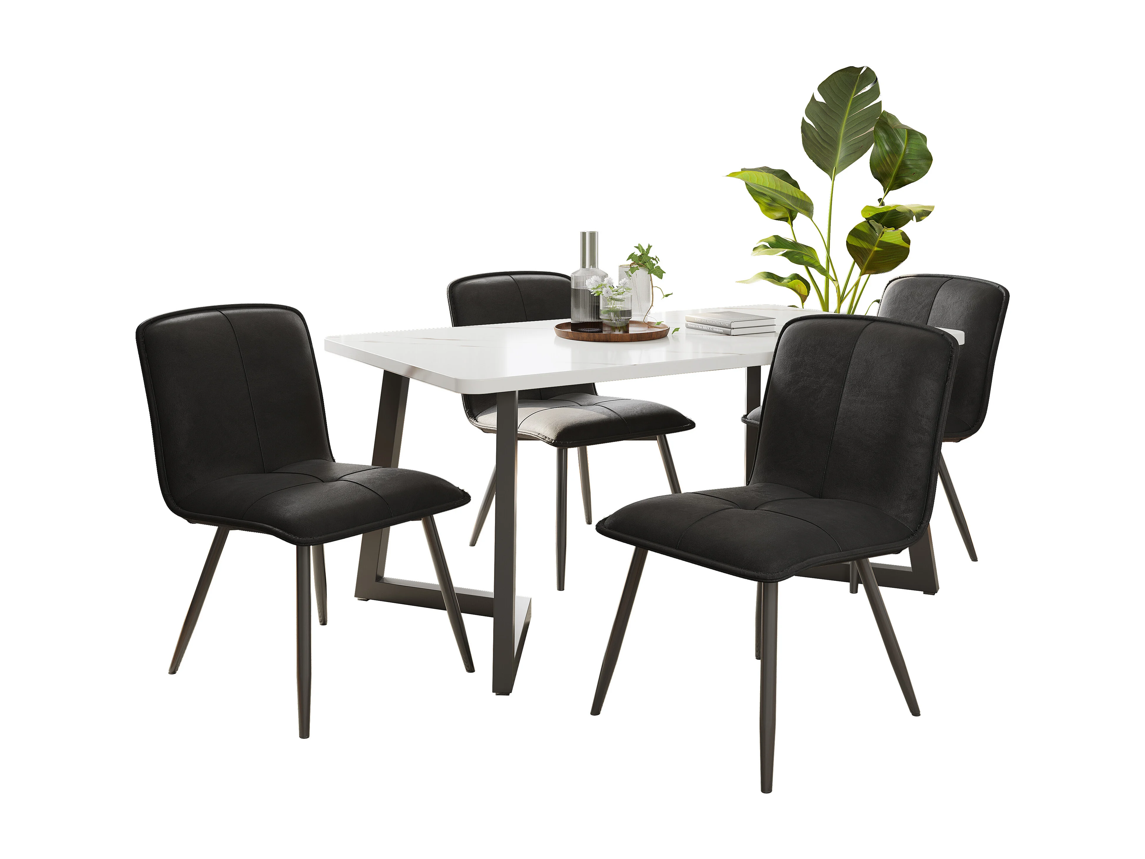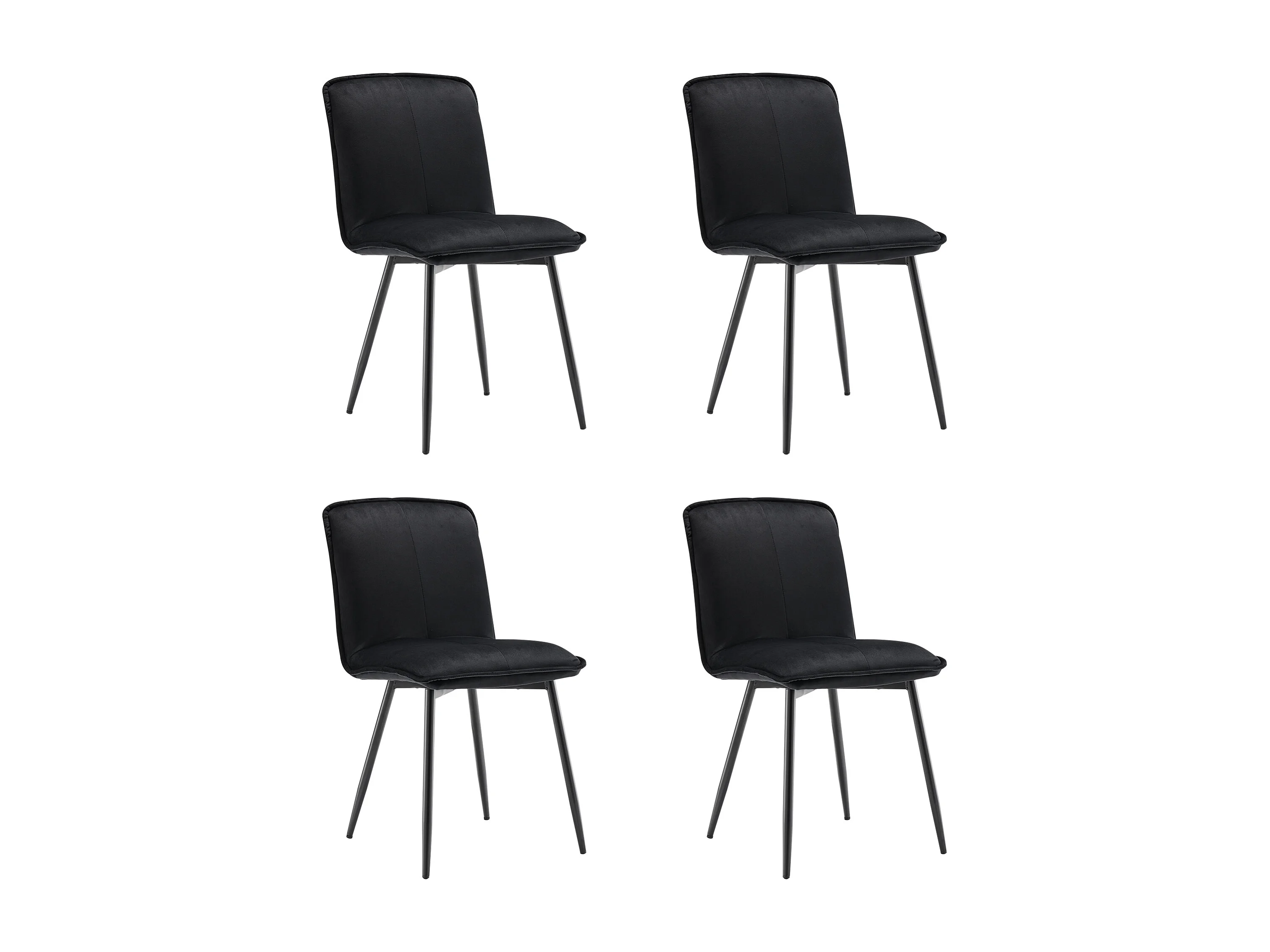 Lot de 4 Chaises de salle à manger avec dossier - 46x40x86 cm - Velours et Métal - Noir