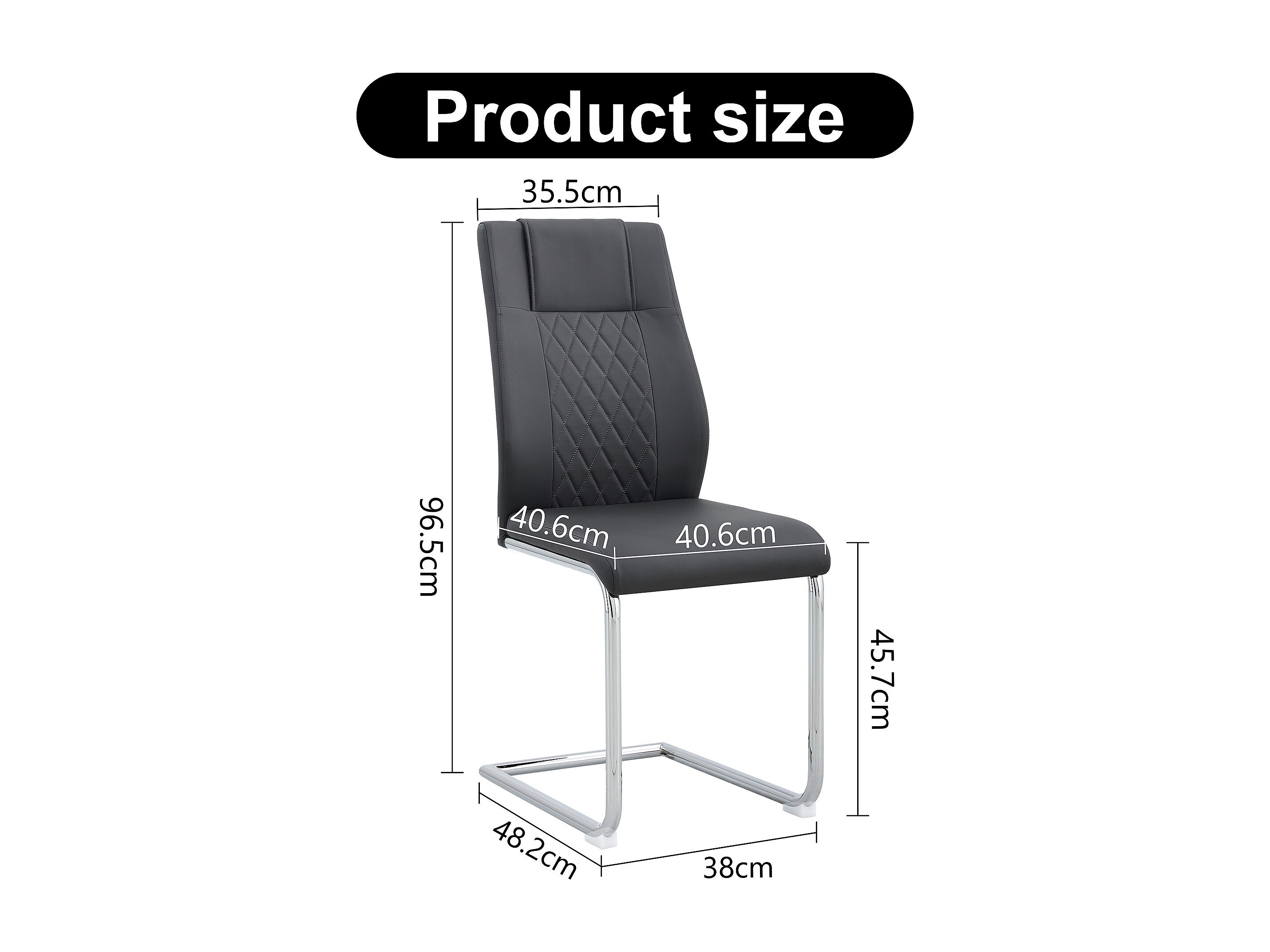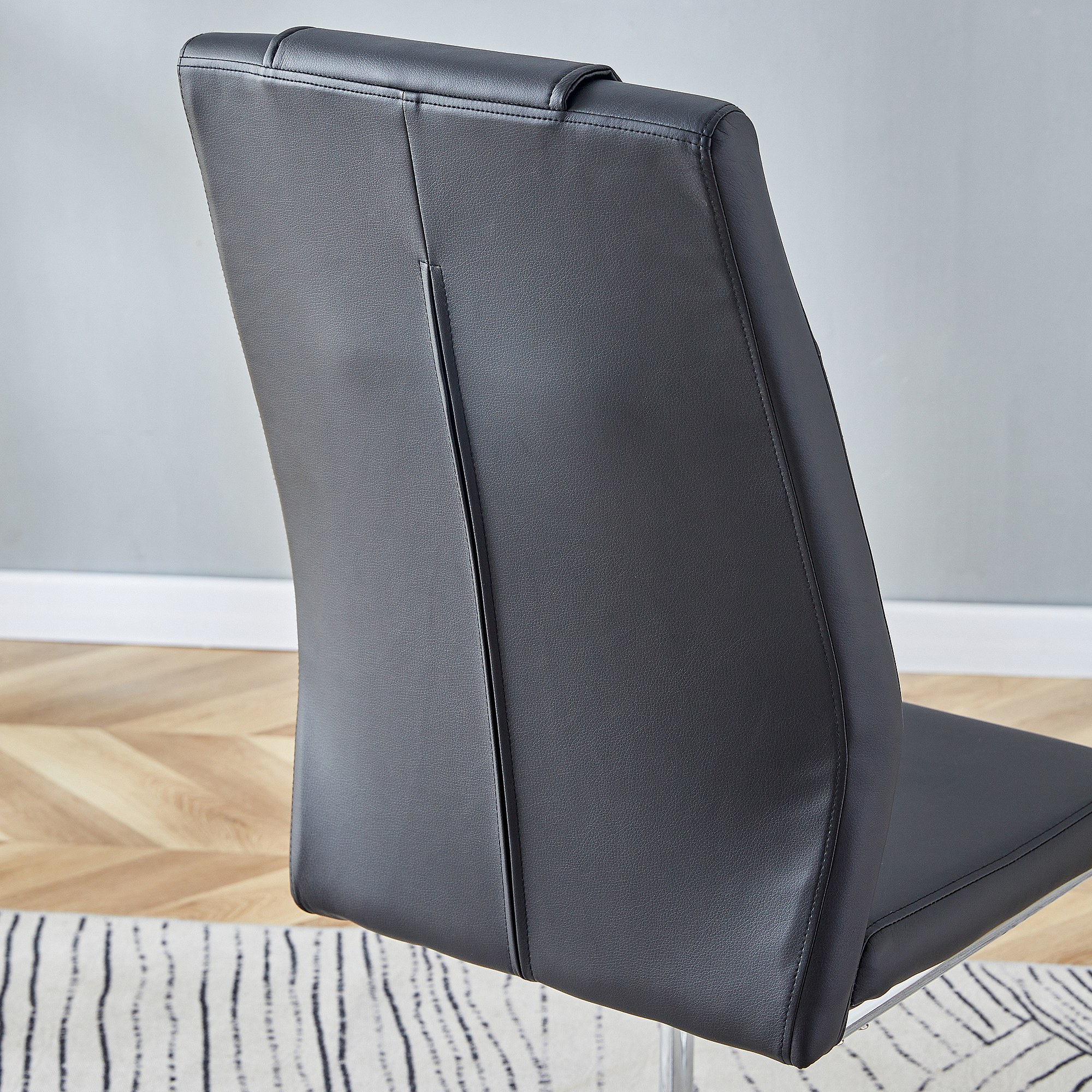 Lot de 4 chaises de salle à manger - Chaise de salle à manger avec dossier et patins antidérapants - pieds en métal argenté brillant - PU noir