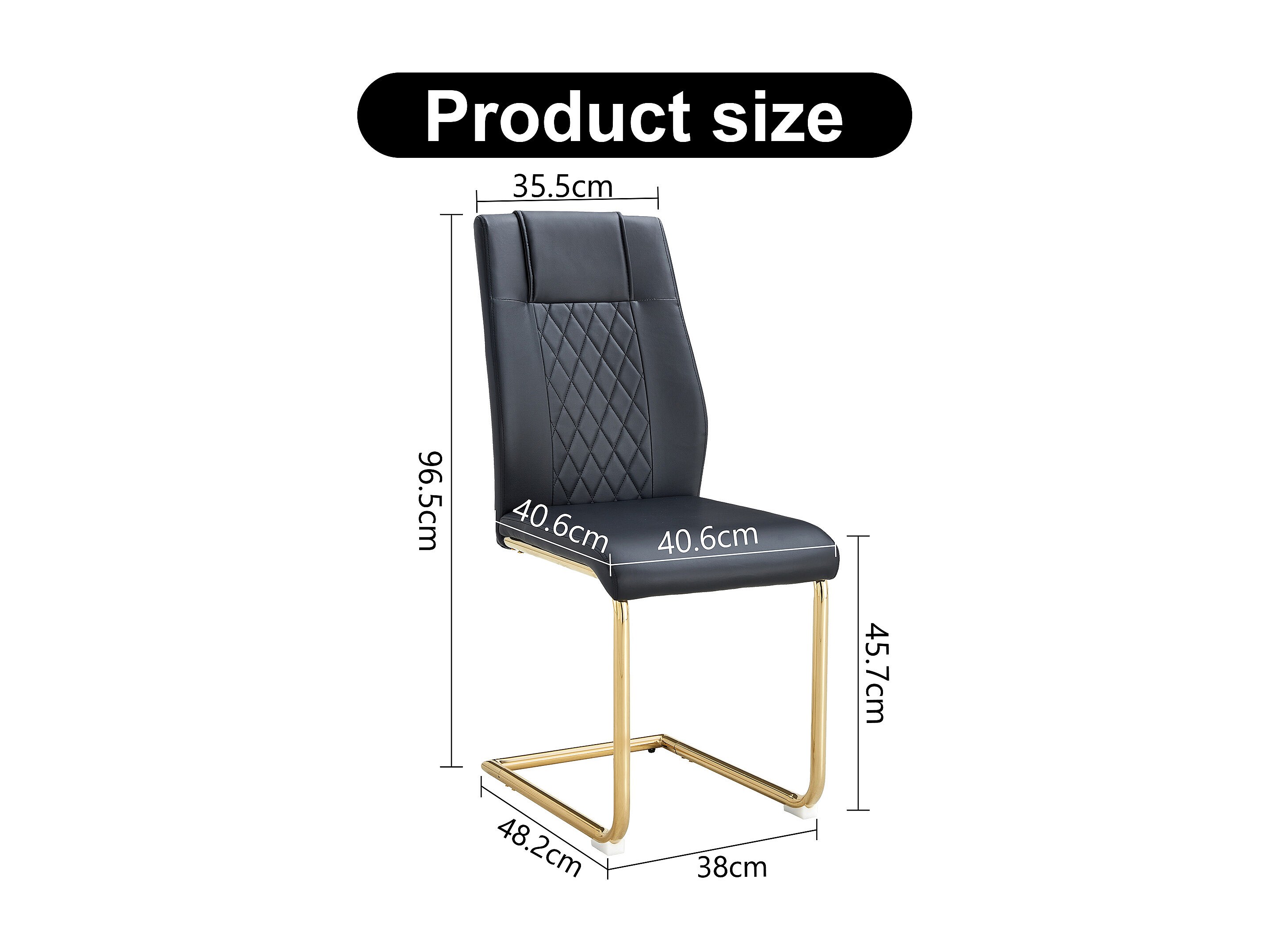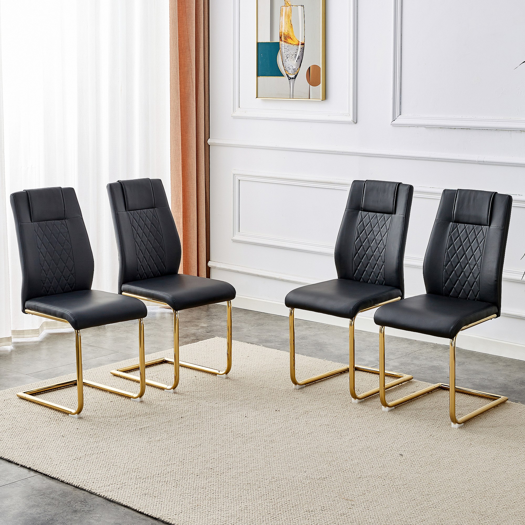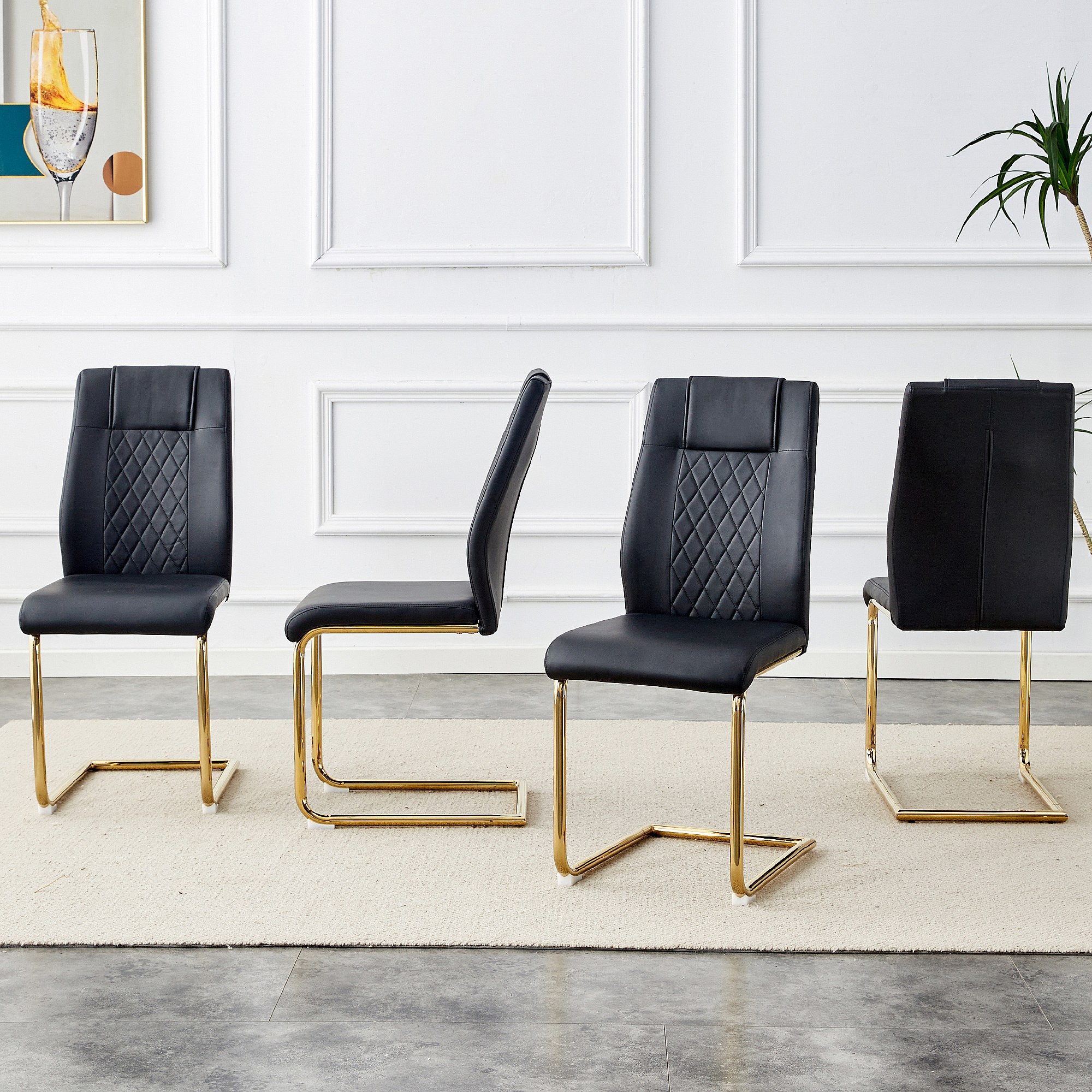 Lot de 4 chaises de salle à manger - Chaise de salle à manger avec dossier et patins antidérapants - pieds en métal doré brillant - PU noir
