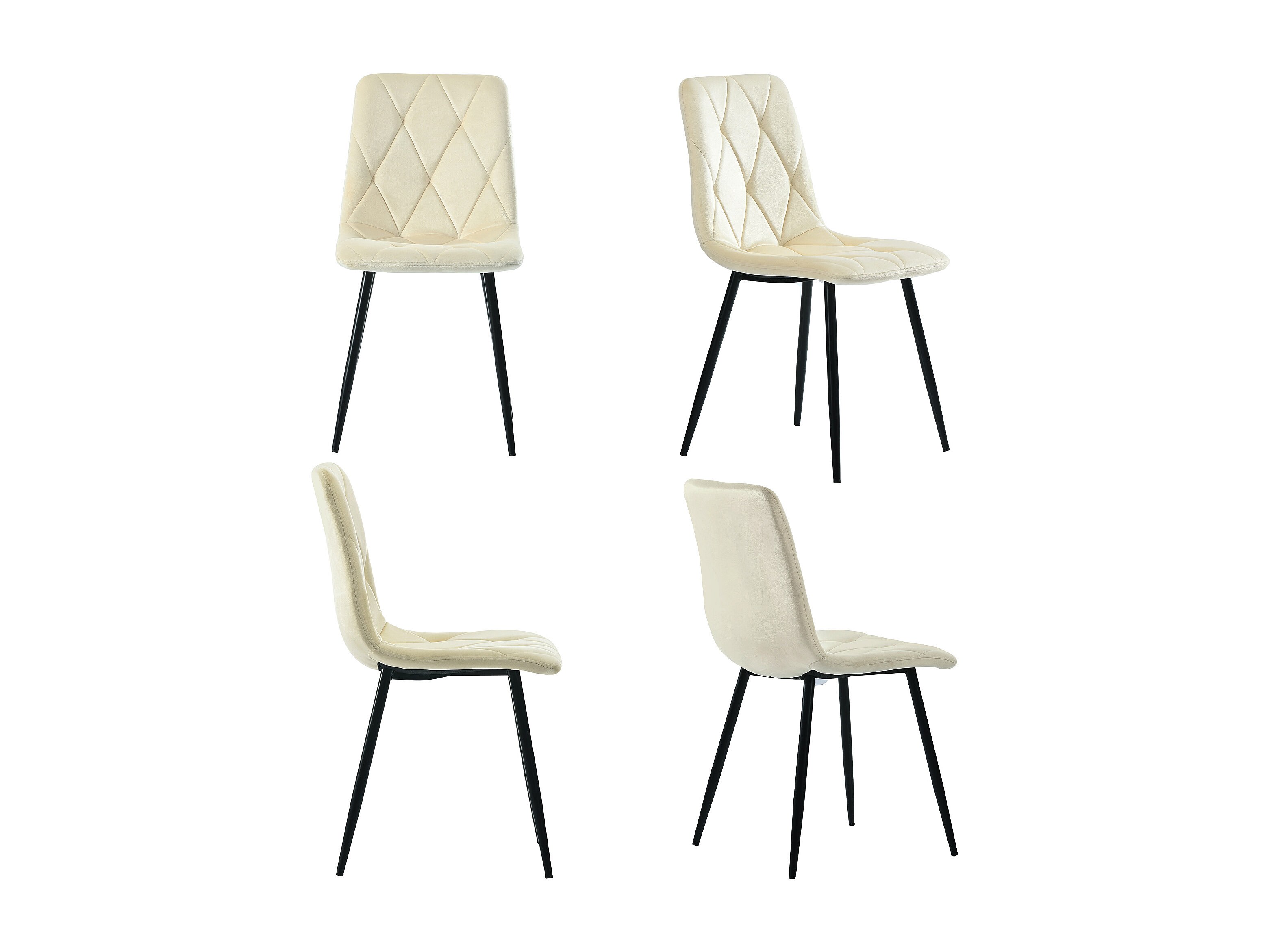 Lot de 4 chaises de salle à manger - Chaises avec dossier en sergé rembourré et pieds en métal - velours beige