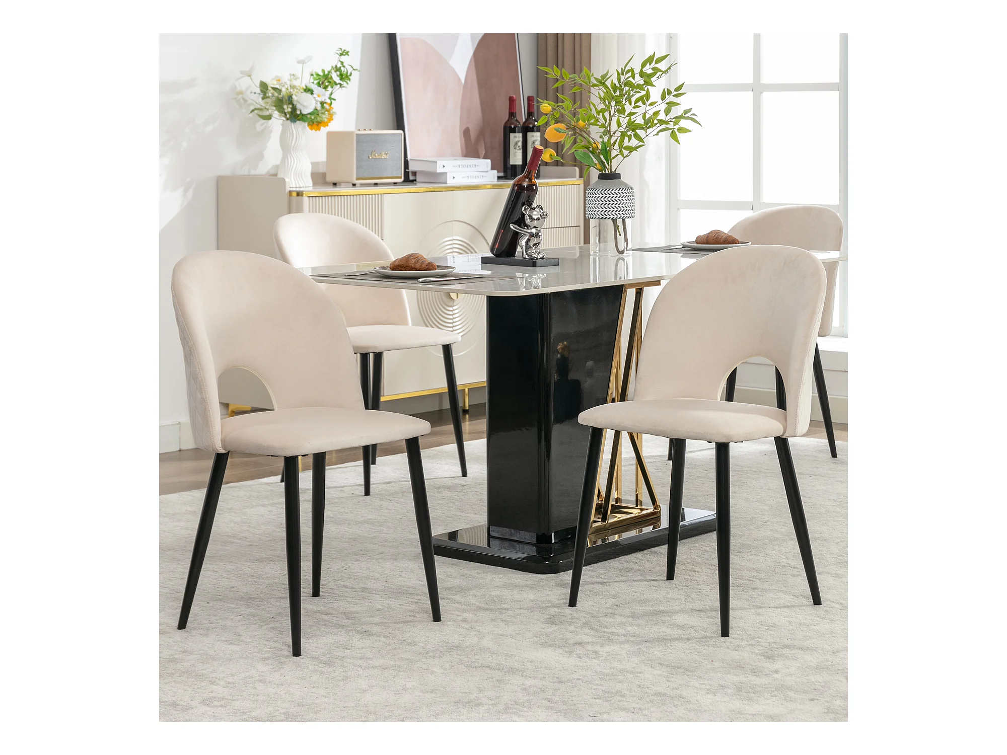 Lot de 4 chaises de salle à manger en velours beige avec dossier rembourré, pieds en métal noir