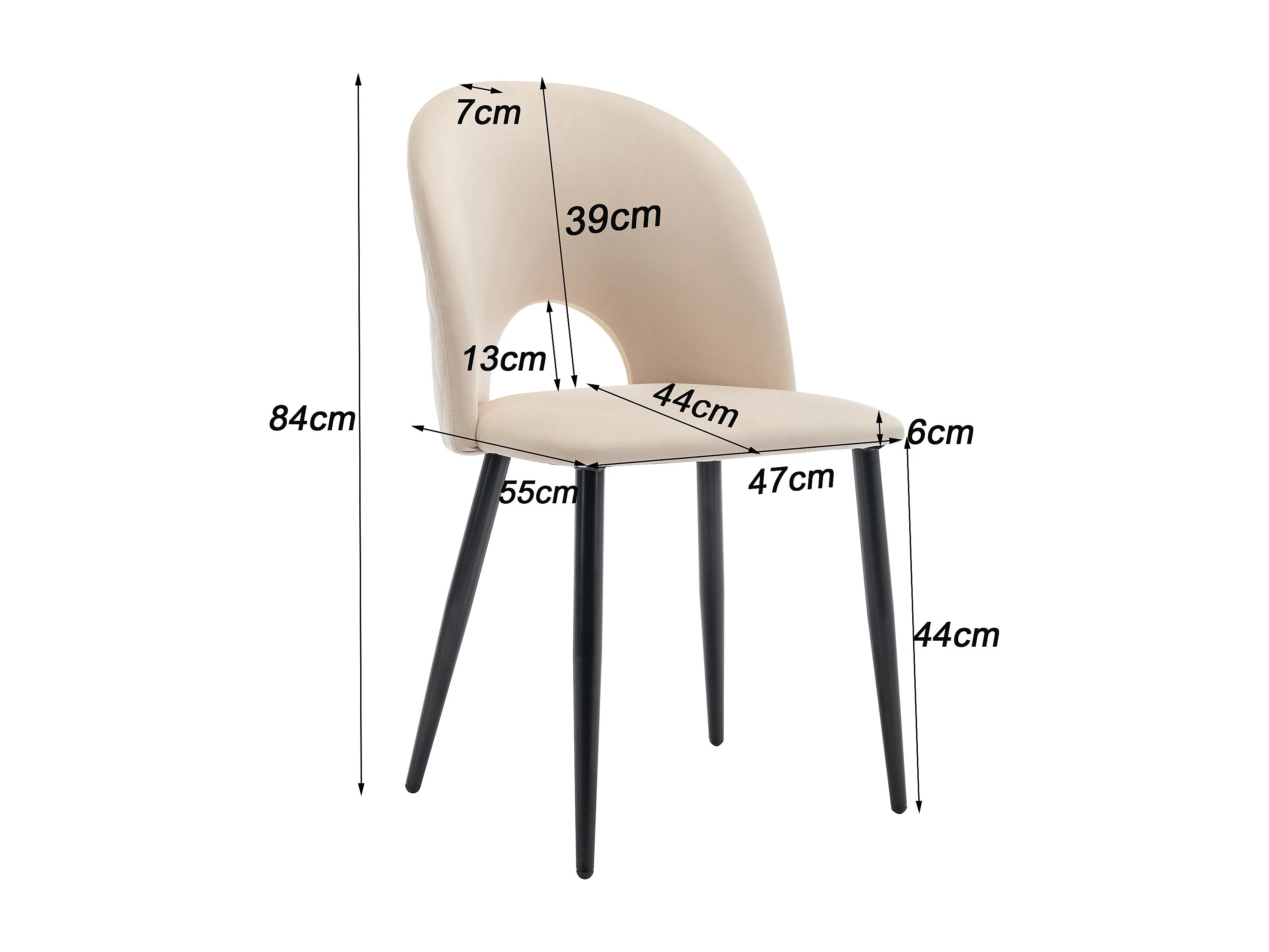 Lot de 4 chaises en velours, pied en métal noir - beige