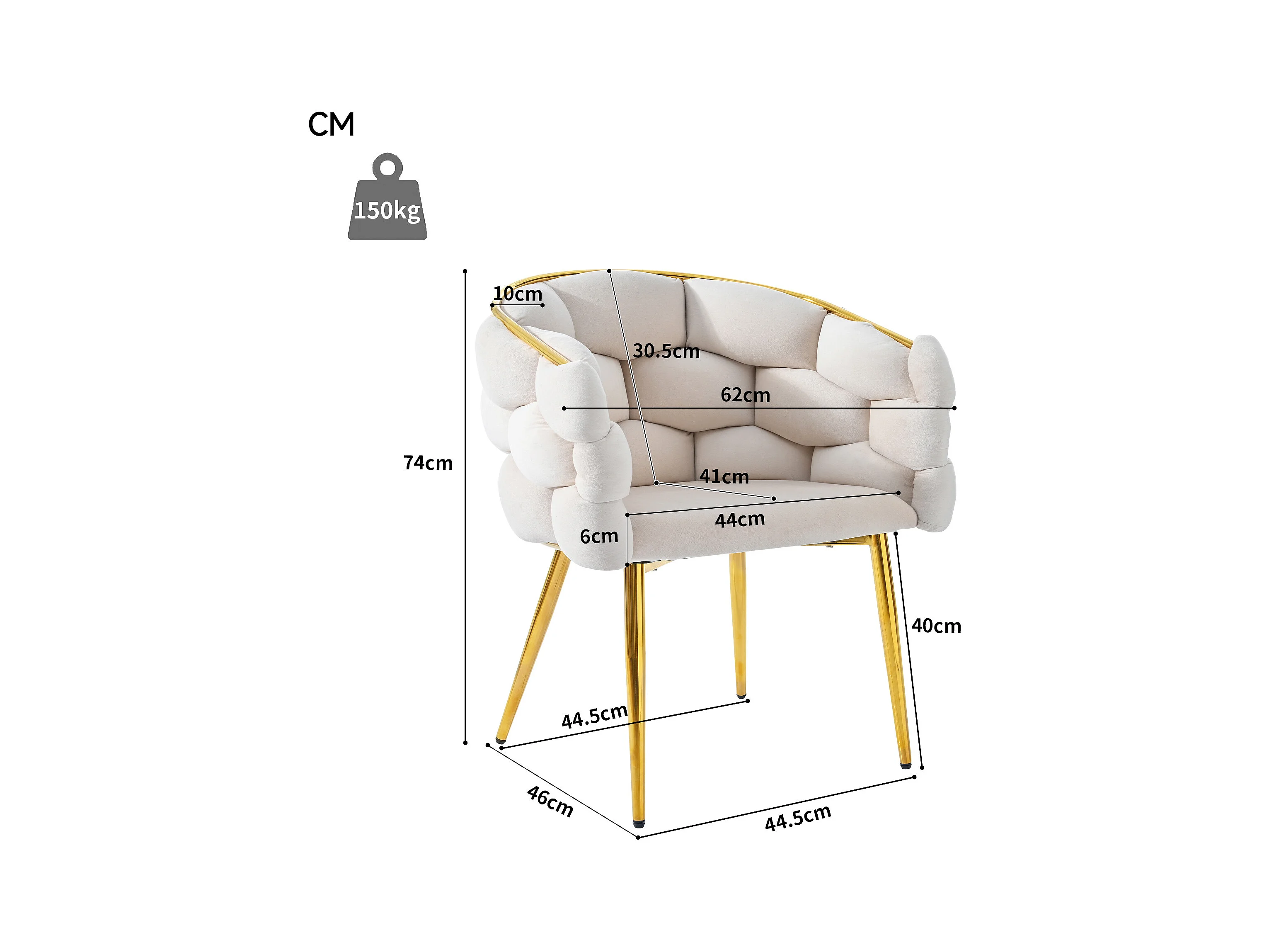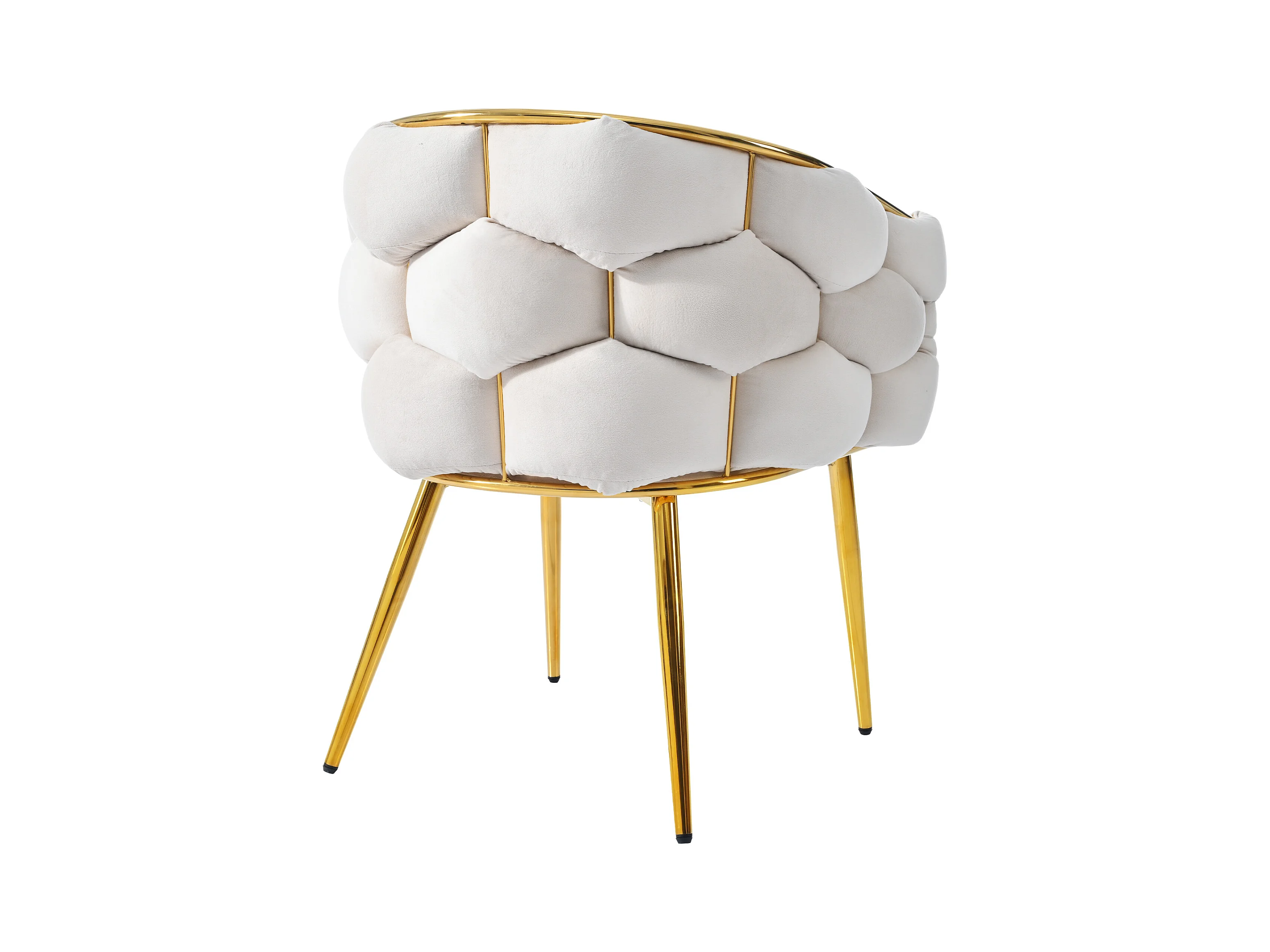 Lot de 4 chaises luxe en velours - 62.23 x 58.42 x 55.88 cm - avec quatre pieds en métal doré - beige