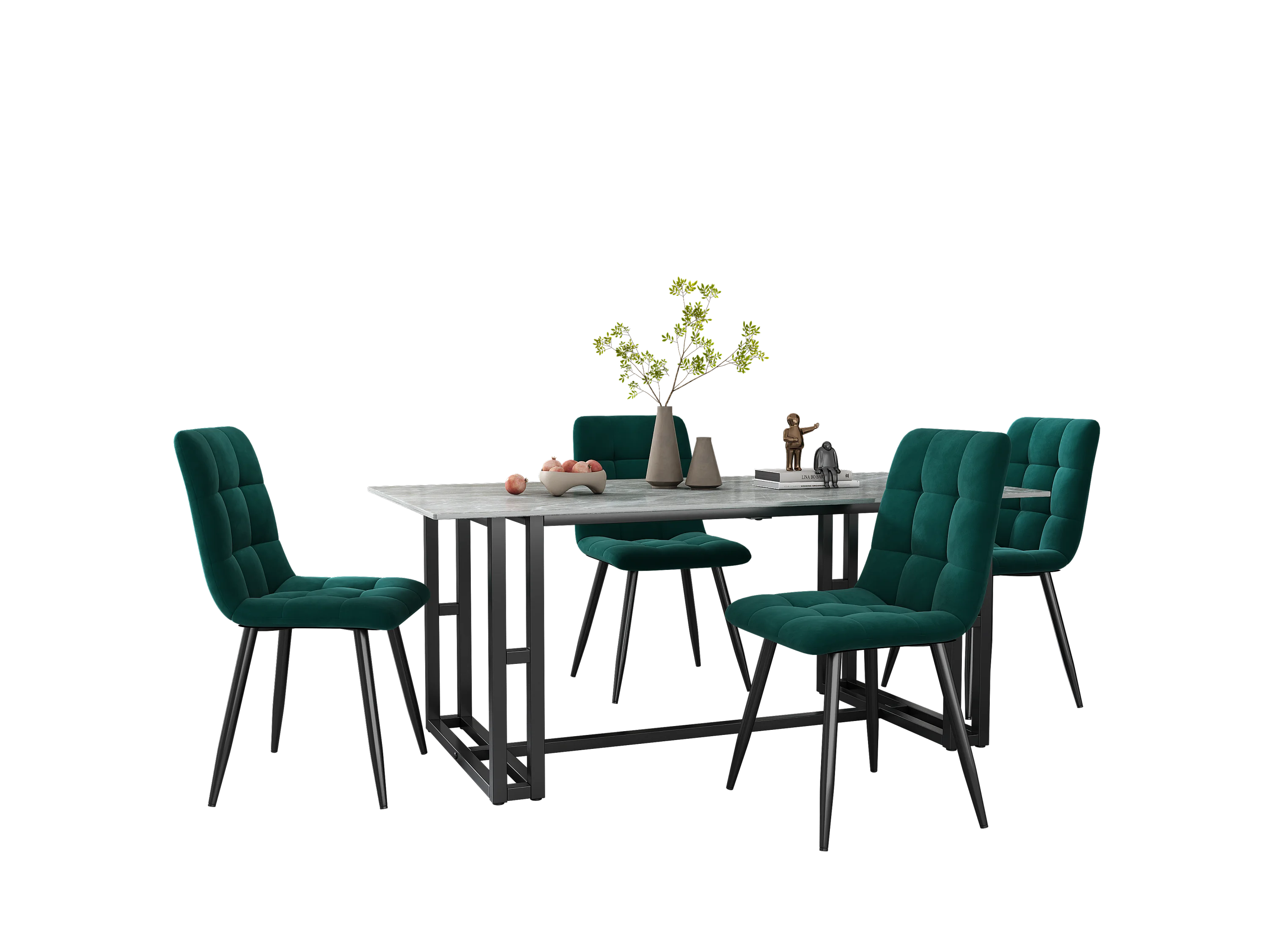 Lot de 4 chaises de salle à manger en velours - pièds en métal - vert foncé