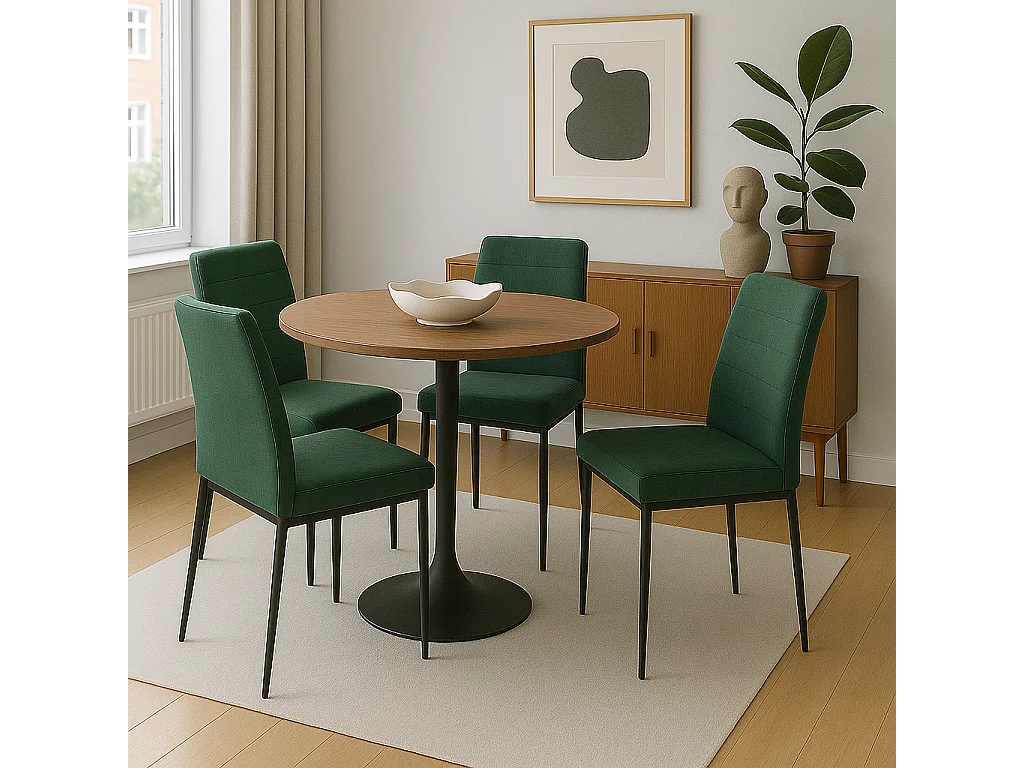 Lot de 4 chaises de salle à manger MILO, tissu rayé (vert)